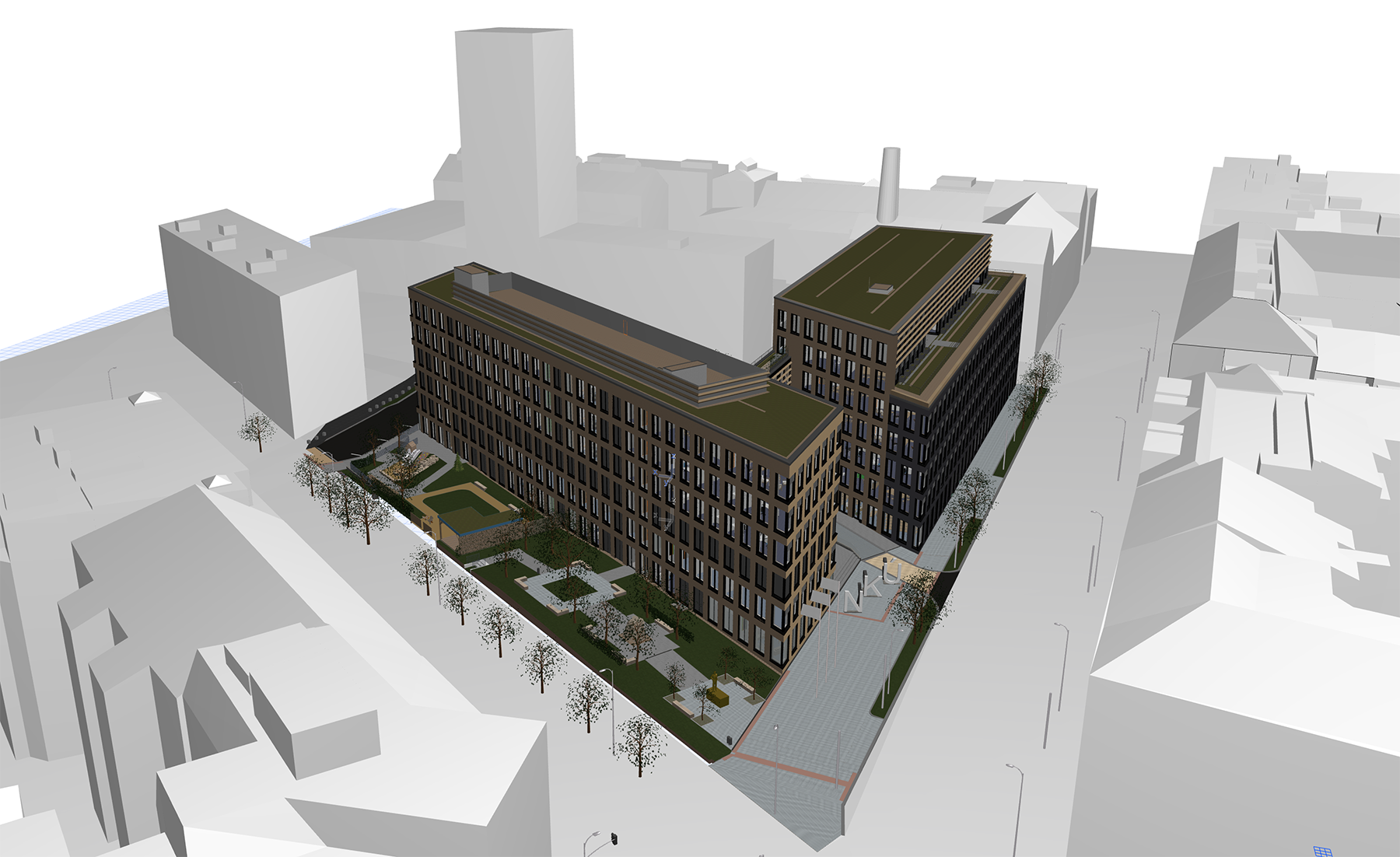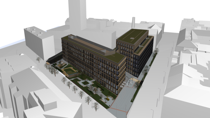 zde bude sídlit i Parlamentní knihovna a Archiv Poslanecké sněmovny. V areálu bývalého holešovického pivovaru vzniknou dvě moderní kancelářské budovy, které splňují nároky na nízkou
