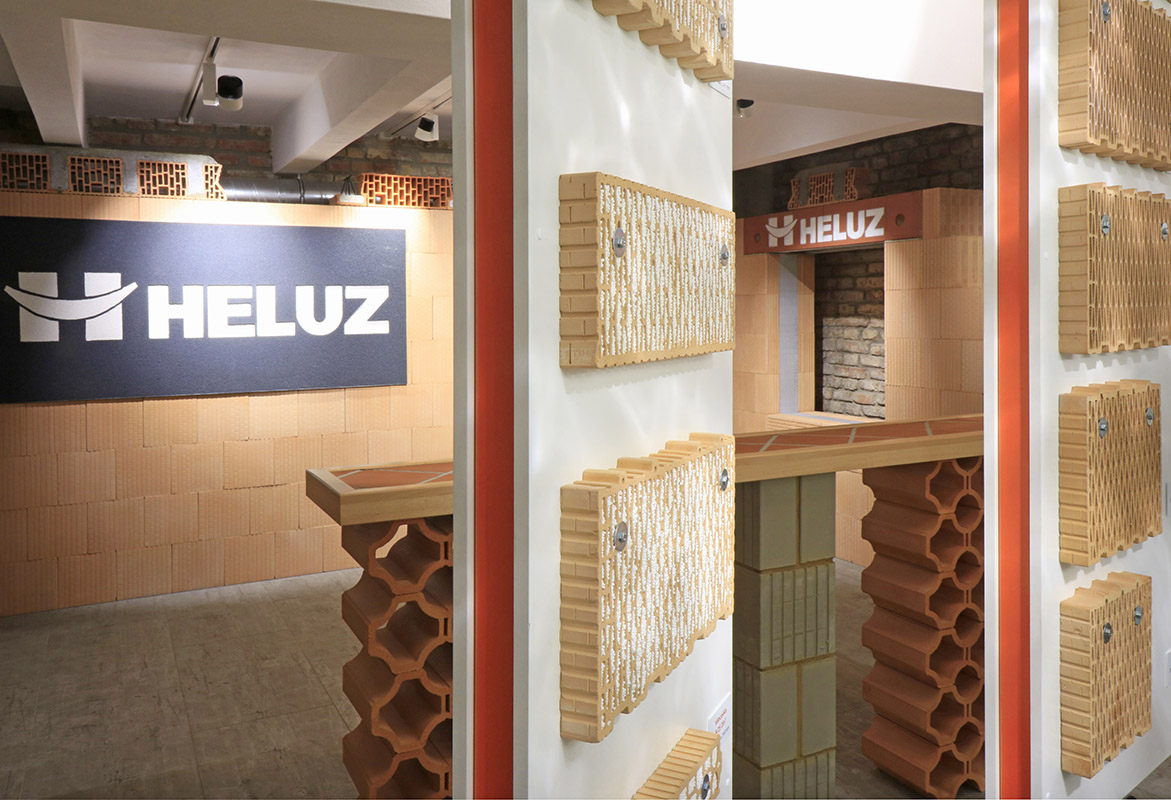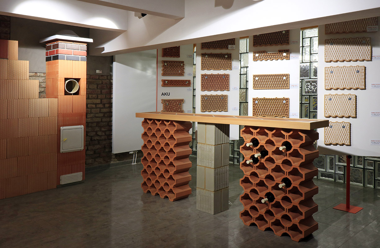 Na instalovaném fragmentu zdi domu je představen celý přehled sortimentu – vodorovné i svislé konstrukce, speciální prvky, cihelné komíny, stropy a další. Za pozornost stojí i jedinečné nepálené cihly, které ocení příznivci ekologického stavění, či cihly s nejlepšími tepelněizolačními vlastnostmi na našem trhu, v nichž je již zabudována izolace, a které proto nevyžadují dodatečné zateplení.