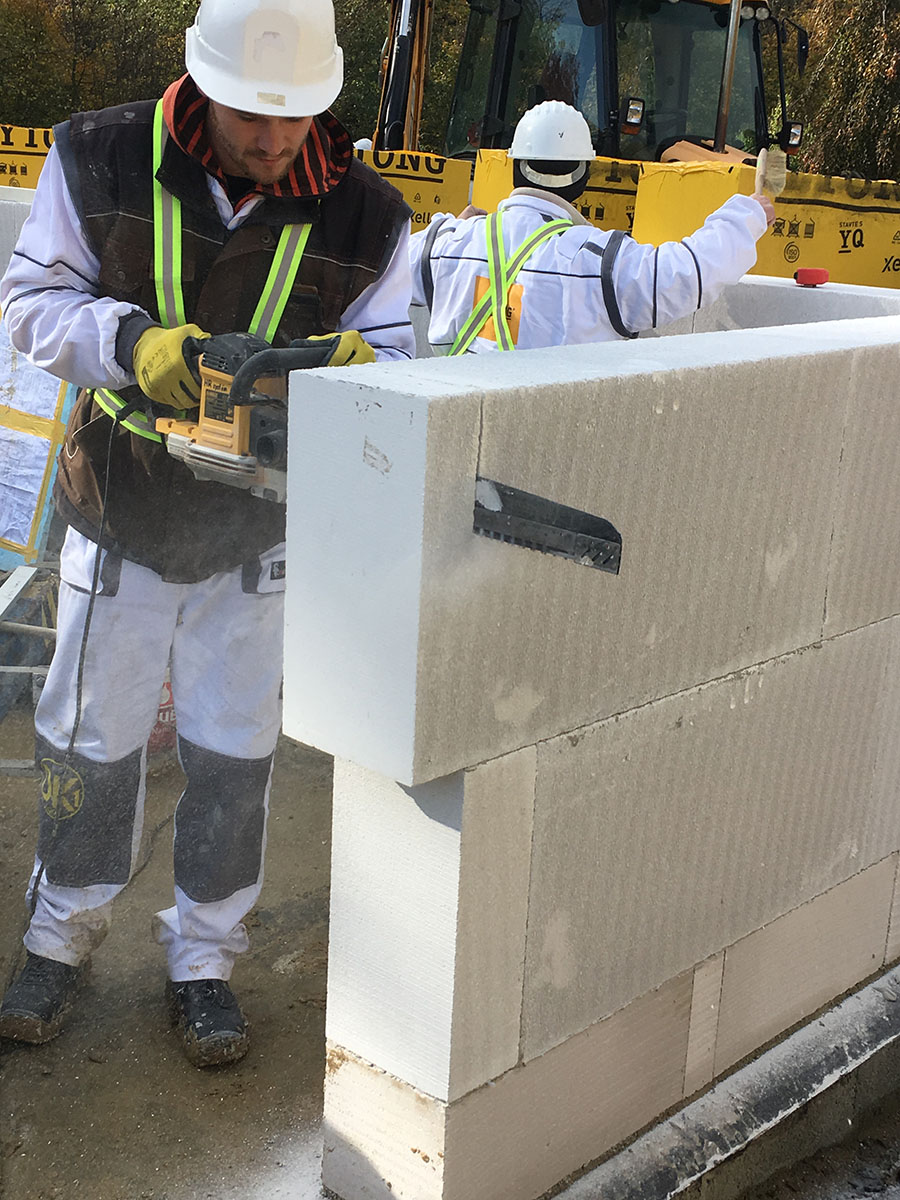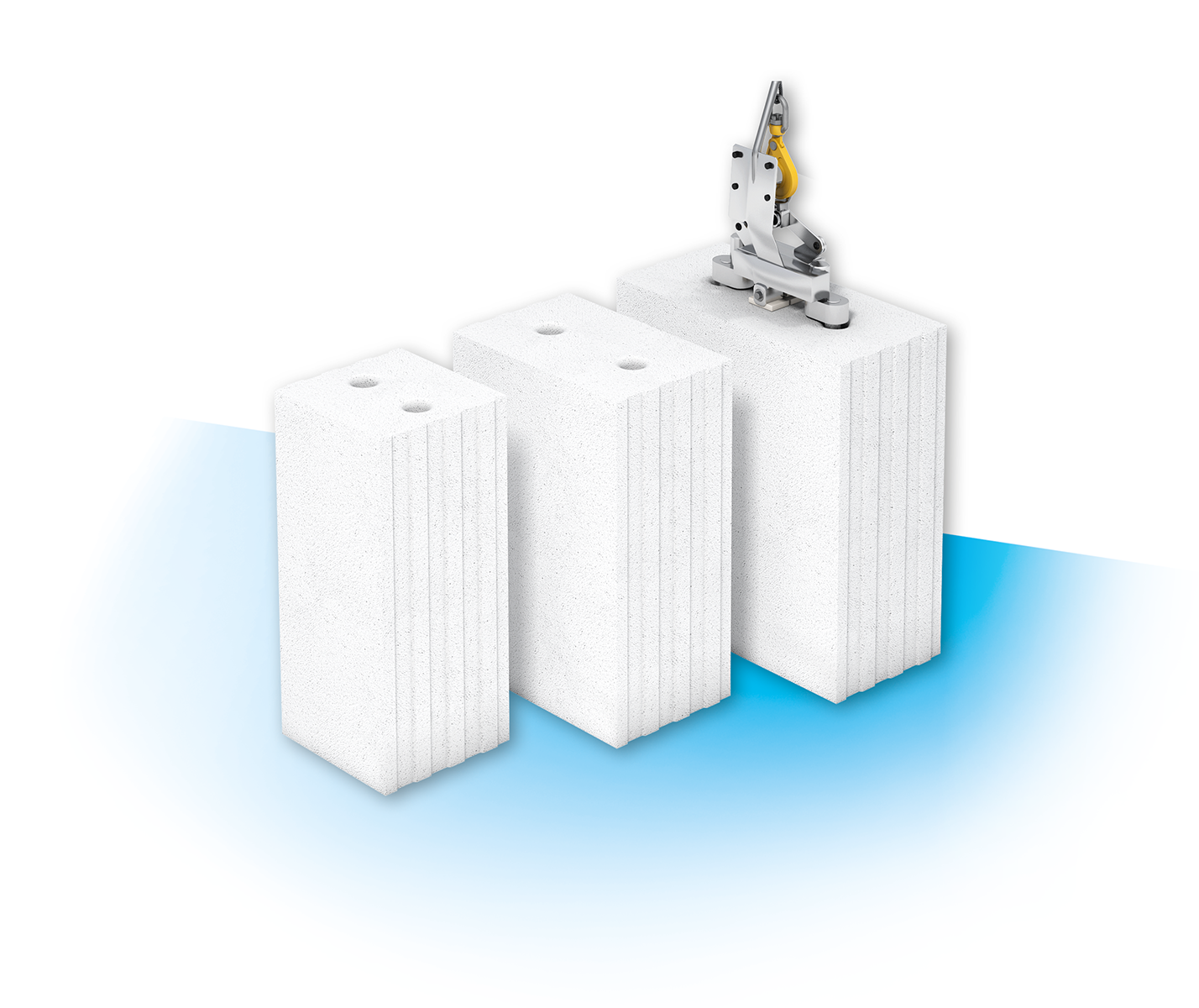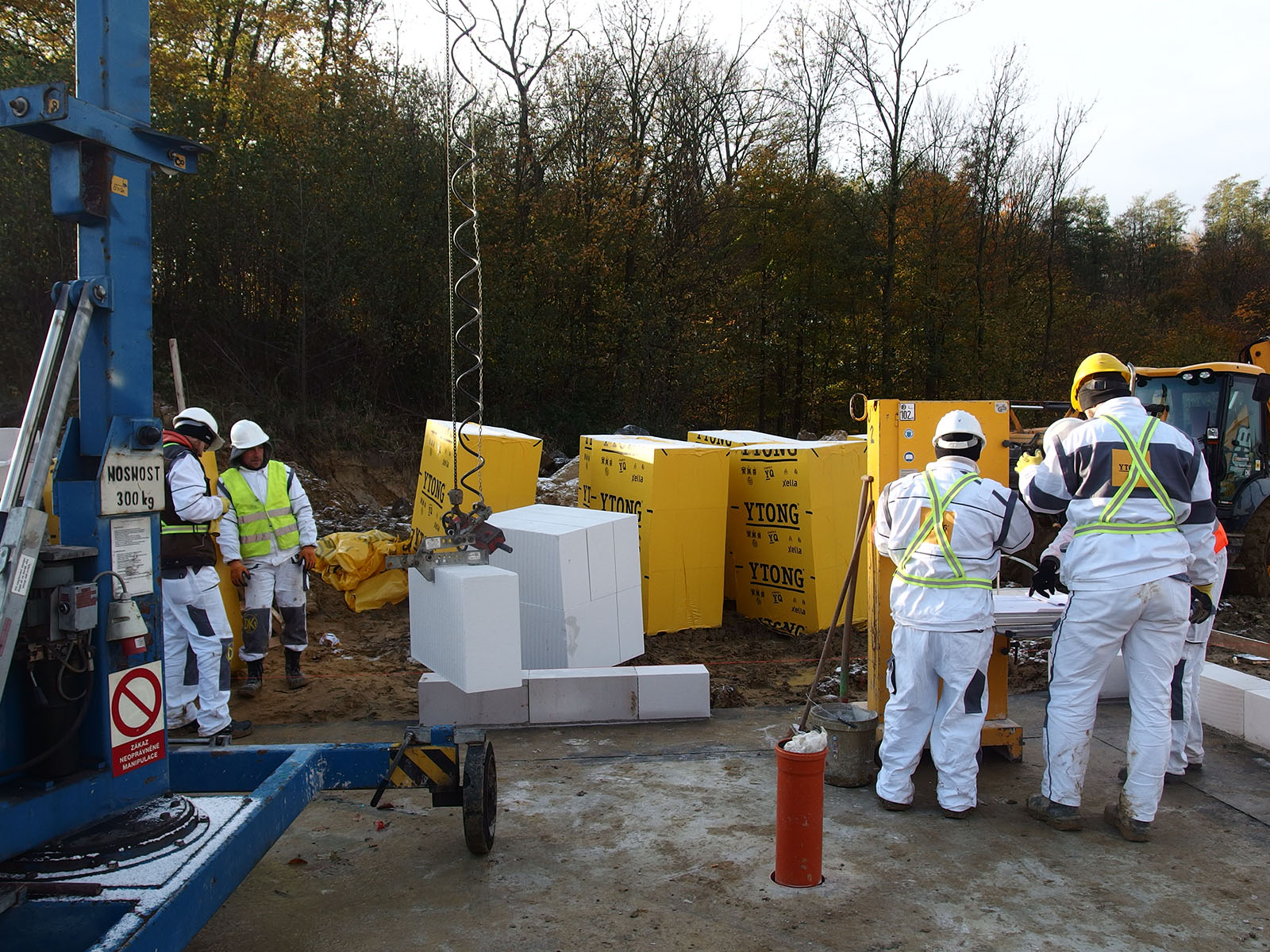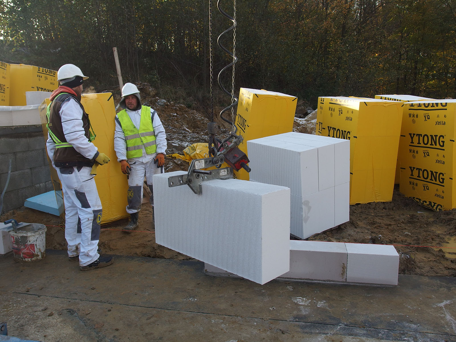 pomocí minijeřábu, dají se tak snadno kombinovat s tvárnicemi Ytong