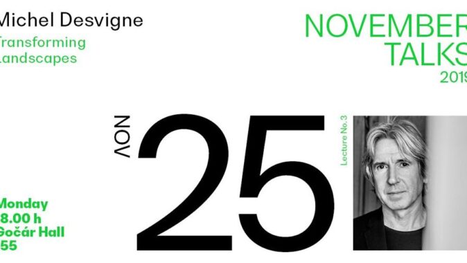Třetím přednášejícím November Talks 2019 bude Michel Desvigne, významný francouzský krajinářský architekt, v roce 2014 jedna z hvězd konference reSITE. Desvigne je krajinář, spolupracující se světovými architektonickými kancelářemi jako jsou Herzog & de Meuron, Foster + Partners nebo Jean Nouvel. Promluví o proměně profese krajinářského architekta a jejích výzvách, které jsou dnes více klimatické a ekologické než estetické, jak tomu bylo dříve.