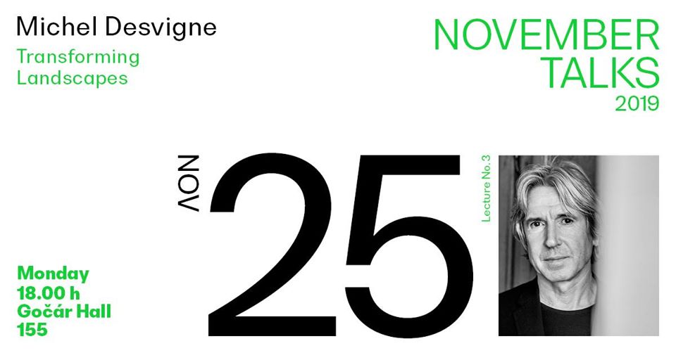 Třetím přednášejícím November Talks 2019 bude Michel Desvigne, významný francouzský krajinářský architekt, v roce 2014 jedna z hvězd konference reSITE. Desvigne je krajinář, spolupracující se světovými architektonickými kancelářemi jako jsou Herzog & de Meuron, Foster + Partners nebo Jean Nouvel. Promluví o proměně profese krajinářského architekta a jejích výzvách, které jsou dnes více klimatické a ekologické než estetické, jak tomu bylo dříve.
