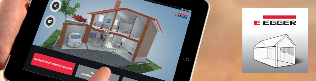 - Řešení konstrukčních dílů v 3D zobrazení pomocí stavebních produktů firmy EGGER.