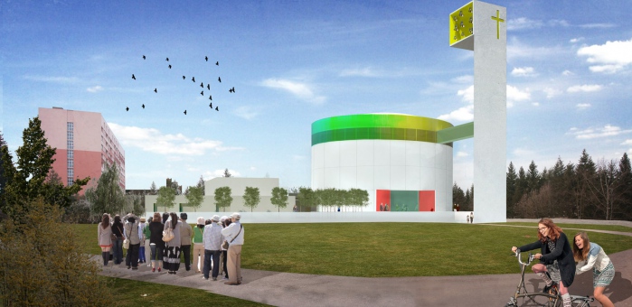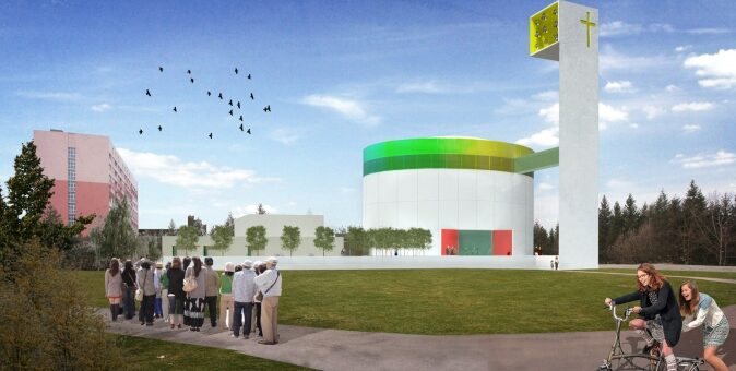 (ČTK) – Římskokatolická farnost na brněnském sídlišti Lesná chce příští rok začít se stavbou nového kostela v Nezvalově ulici. Má hotový projekt, čeká na změnu územního rozhodnutí a vyřízení stavebního povolení. Kostel s kruhovým půdorysem a samostatně stojící věží navrhl architekt Marek Štěpán, jenž na sakrálních stavbách pracuje opakovaně. Kostel pojme 400 lidí.