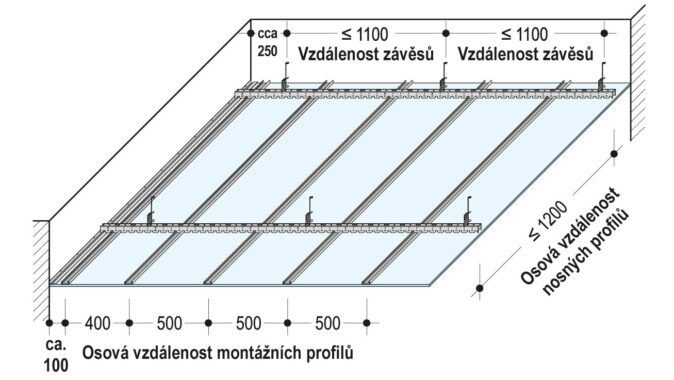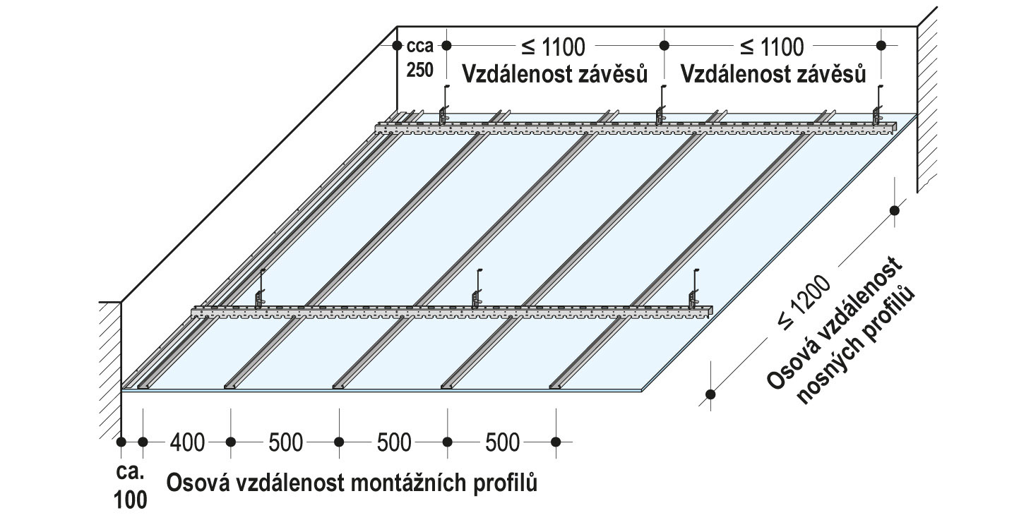 Nový podhled nabízí díky své unikátní konstrukci zvětšení osových vzdáleností závěsných bodů na 1200 mm a osovou vzdálenost hlavních profilů až 1100 mm. V důsledku toho došlo ke snížení počtu závěsů a profilů na metr čtvereční plochy. To samo o sobě velmi zjednodušuje práci montážní firmy a šetří finance investora.