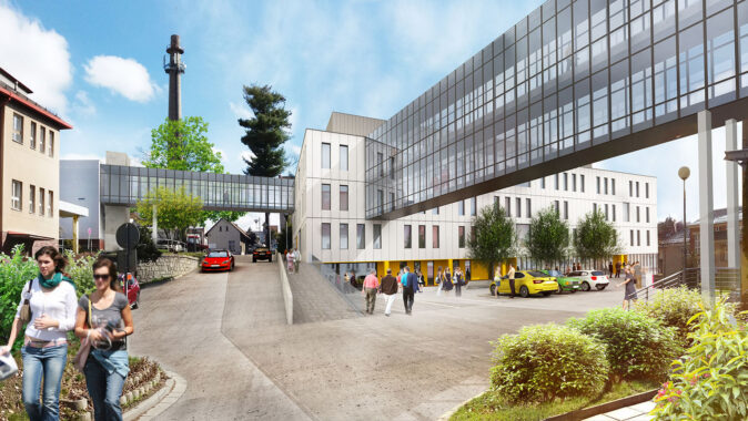 Pětipodlažní budovu propojenou se stávajícími klíčovými provozy