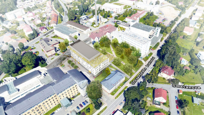 nemocnice třemi nadzemními spojovacími krčky projektuje kancelář
