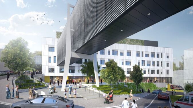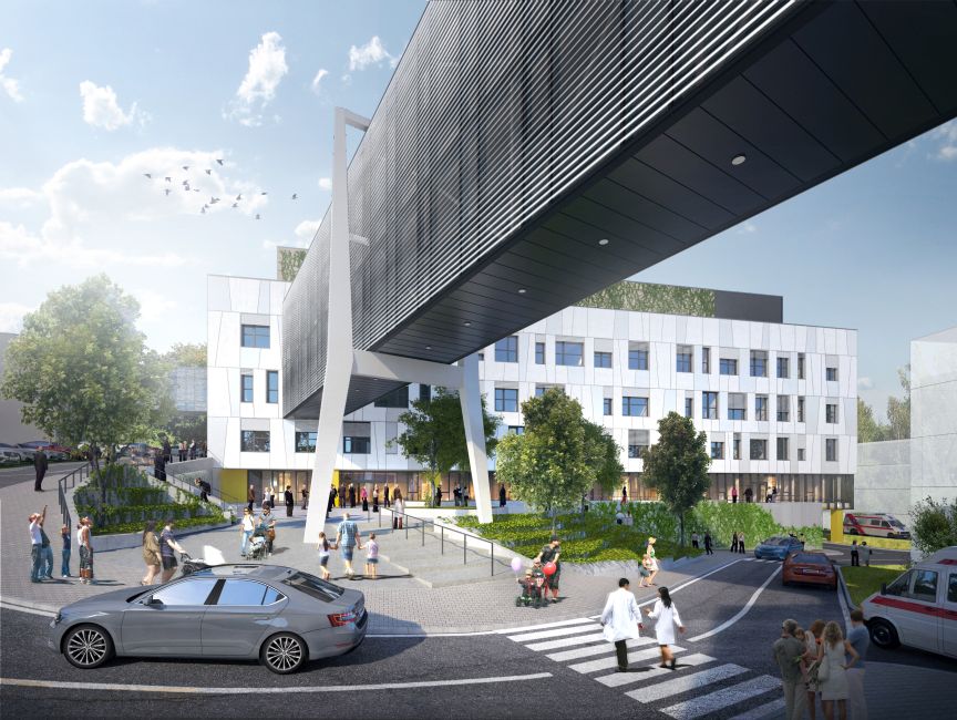 budovu propojenou se stávajícími klíčovými provozy nemocnice třemi nadzemními