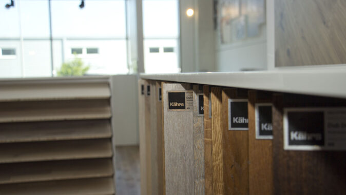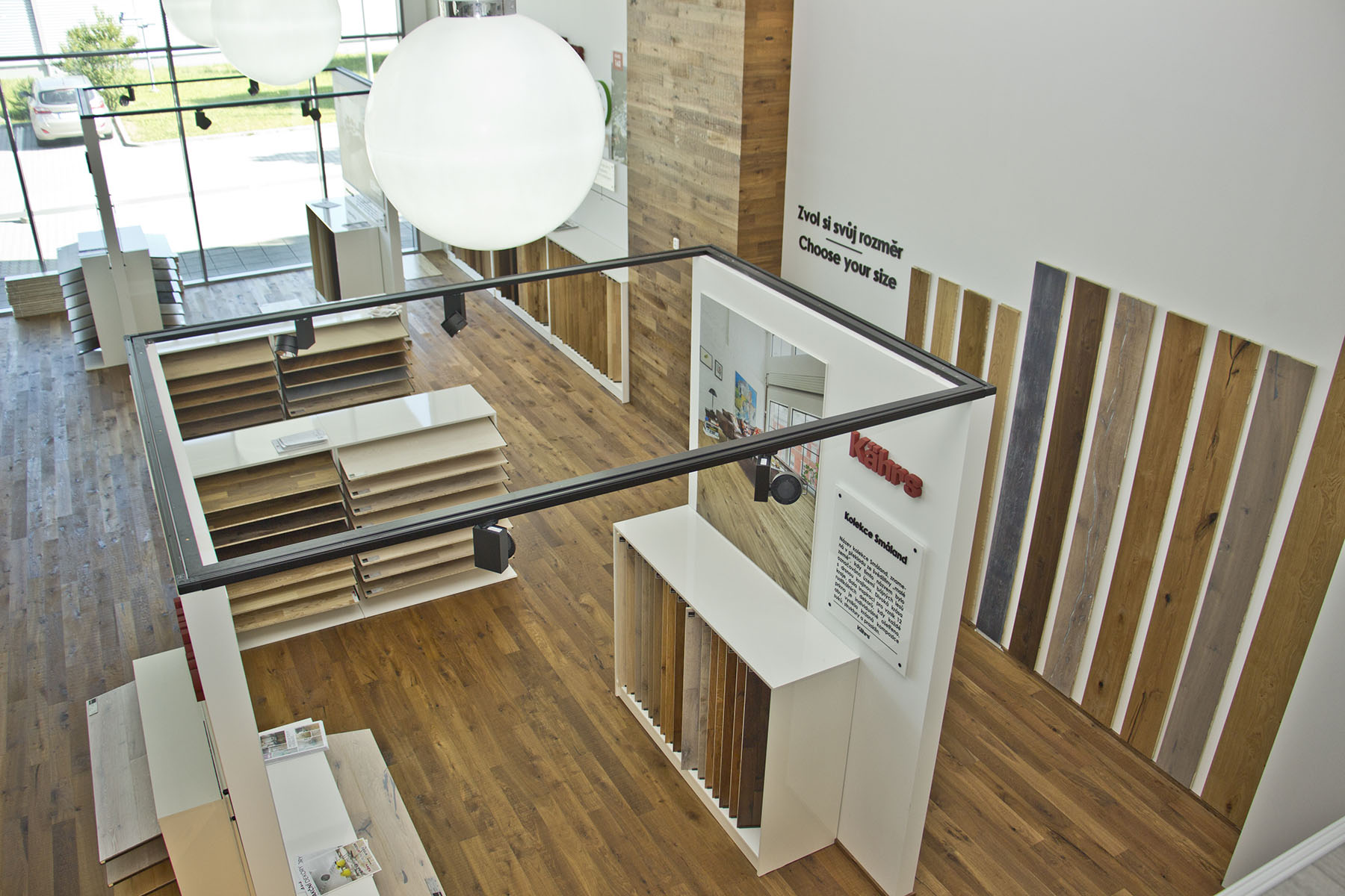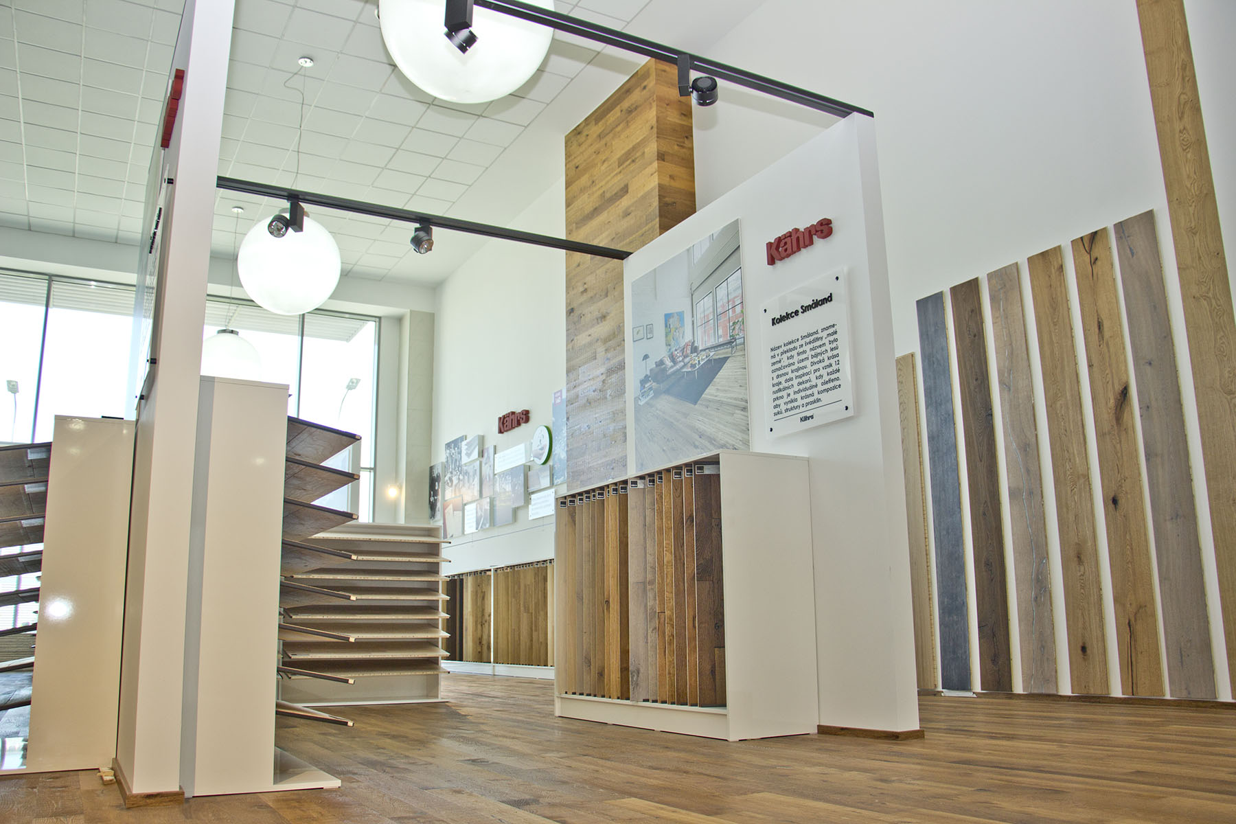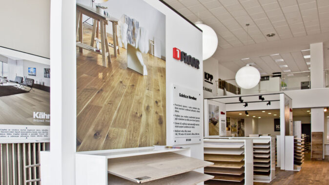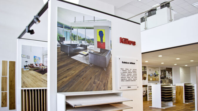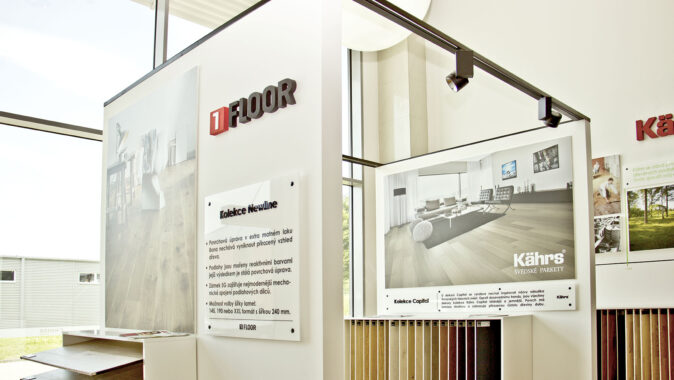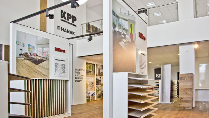 Nový showroom, který si společnost KPP sama navrhla, obsadil dvě patra a zhruba 300 m2 plochy. Přízemí se věnuje dřevu a dominuje mu představení švédské společnosti Kährs, firmy s tradicí od roku 1857 a největšího výrobce třívrstvých podlah na světě, jejichž výhradním dovozcem a distributorem v ČR je právě Kratochvíl parket profi. Několika kolekcím Kährs je věnován speciální prostor a je popsán i jejich příběh. „U dražších kolekcí zákazník očekává něco víc, než jen vzorek podlahy, třeba příběh jejich vzniku, inspiraci tvůrců,“ vysvětluje Petr Kratochvíl. Dalšími zastoupenými značkami je vlastní brand 1FLOOR q nová značka dřevěných podlah Karelia.
