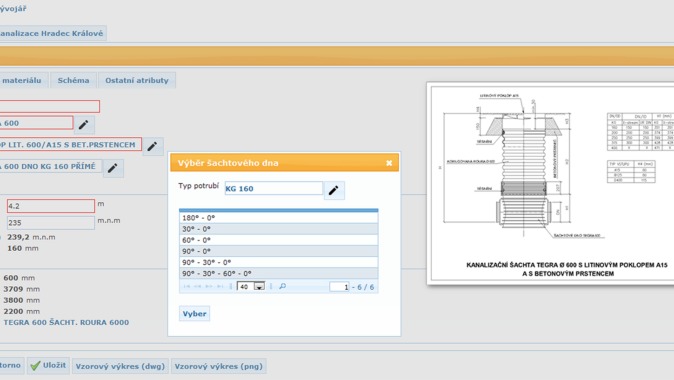 Aplikace Kanalizační šachty umožňuje velmi jednoduchým