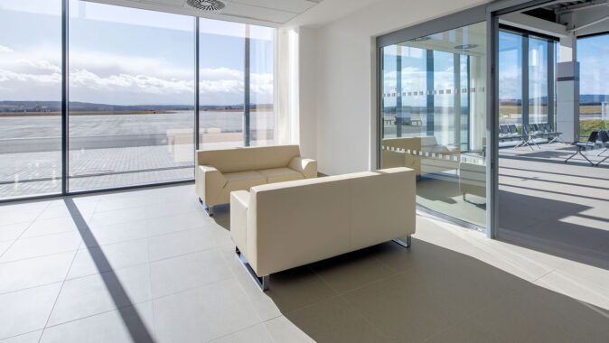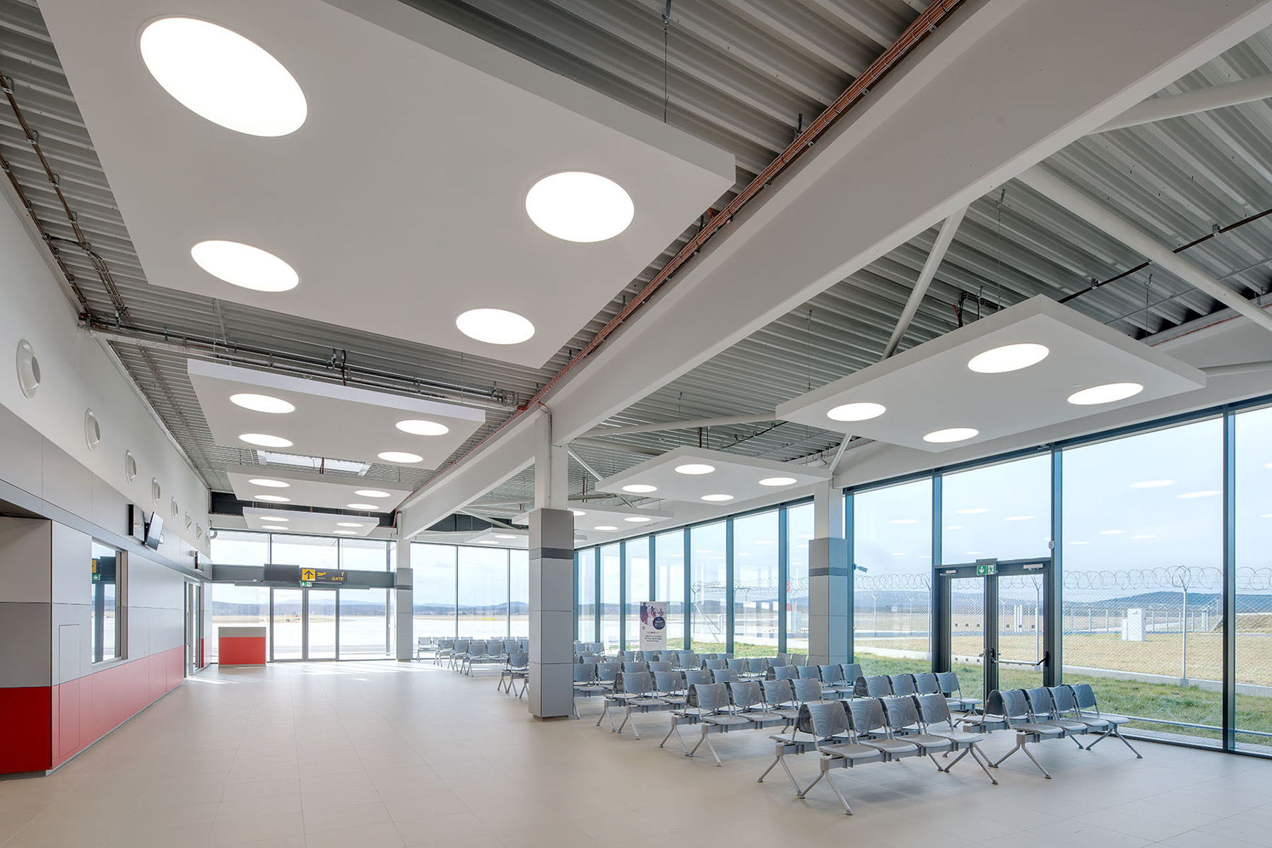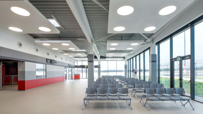 odbavovací halu, tak pro přilehlé prostory, například toalety. Jde o vysoce