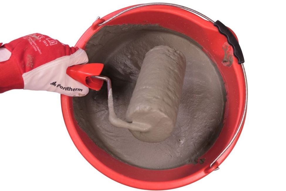 Kromě válečku Porotherm Easy budeme potřebovat stavební vědro na vodu a na rozmíchání malty, balení tenkovrstvé malty Porotherm Profi, elektrické míchadlo stavebních hmot a malířskou štětku. Maltu rozmícháme ve vědru podle návodu. Hmota musí být jednolitá a bez hrudek. Její konzistence zhruba odpovídá konzistenci medu, cca 9,5 l na 25kg pytel tenkovrstvé malty Porotherm Profi.
