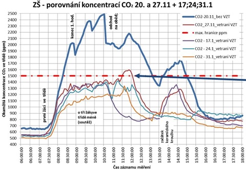 vyplývá, že přirozené větrání ve třídách není dostatečné. To je velmi dobře