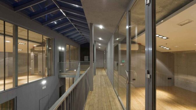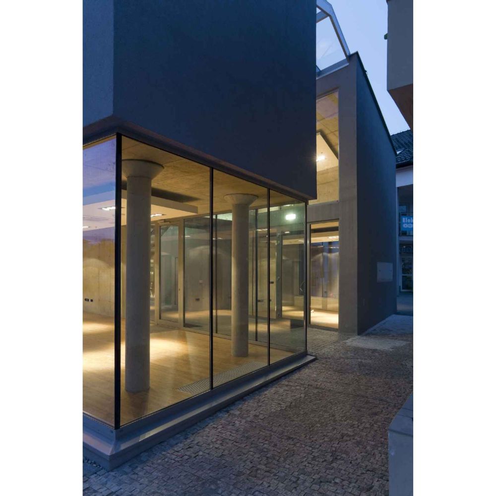 Na stavební parcele se původně nacházela budova s knihkupectvím, přízemní objekt herny a z větší části byla prolukou. Nové obchodní centrum sestává ze zrekonstruované stavby s fasádou z režného zdiva a dvojice nových objektů. Při návrhu jsme se snažili sladit dva protichůdné zájmy: maximálně využít stavební pozemek a zároveň dosáhnout toho, aby součástí obchodního centra byl kdykoliv přístupný veřejný prostor. Domy s vnitřním, veřejnosti přístupným prostorem a pavlačí údajně byly kdysi v centru Rožnova časté, nicméně dnes se již novostavby takto obvykle nestaví. Proto je novostavba rozdělená na dvě dvoupodlažní hmoty, mezi kterými se nachází pasáž zakrytá skleněnou střechou. V přízemí a patře se nachází různě velké obchodní prostory, které se do ulice i pasáže otevírají velkoformátovým prosklením umožňujícím nejen pohled do interiéru, ale i řadu průhledů skrz celé obchodní centrum.