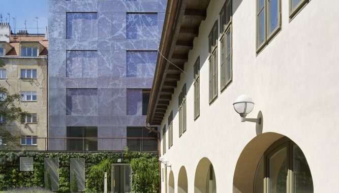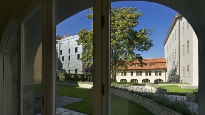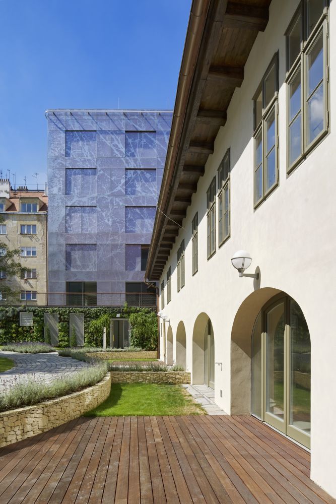 a dostavbou tří historických objektů s vnitřním dvorem; novostavba bytového