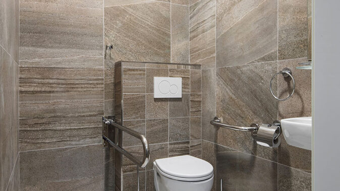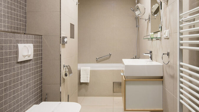 hotel Alexander: Luxusní elegance koupelen v matně šedé
