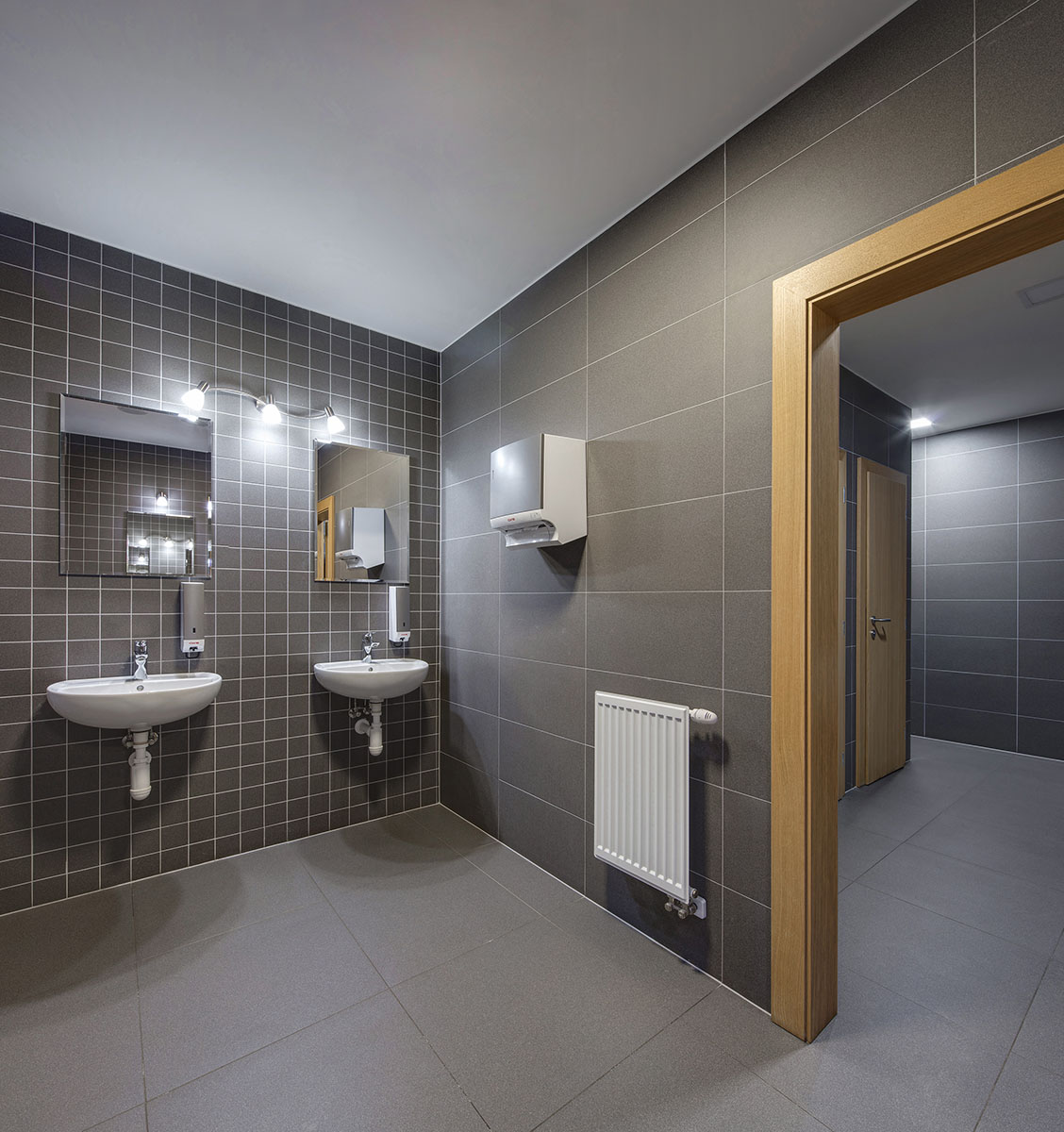 dlaždice ze série Color Two, značky RAKO OBJECT. V místnostech pro personál pak