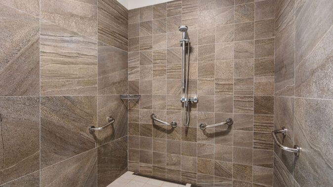 keramickými dlaždicemi RAKO ze série Rock. Jde o mimořádně univerzální, funkční