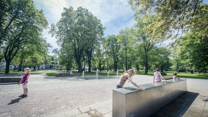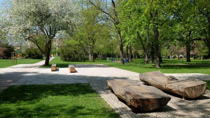 Zásadní proměnou prošla cestní síť, která reaguje na místní pěší tahy a potřeby spojnic důležitých veřejných budov v hierarchickém členění. Parkem jsou vedeny dvě hlavní diagonální cesty doplněné odpočívadly s mobiliářem, které dotváří vedlejší cestní síť. Ve střední části parku se nachází polyfunkční parter jako srdce celého území. Integruje jednotlivé aktivity, je místem setkávání i místem kulturního zázemí. Parter doplňují vodní prvky a mobiliář.