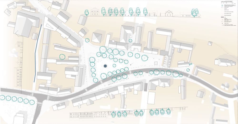 kompoziční řešení. Návrh umožňuje realizaci zeleně v etapách, je detailně
