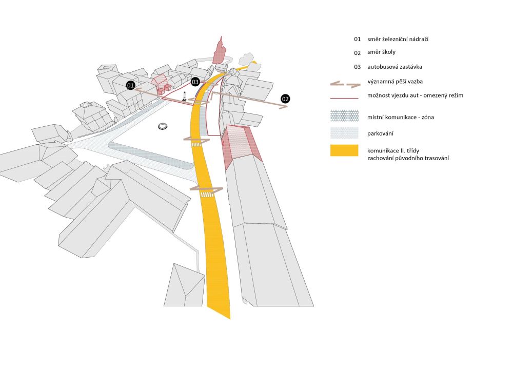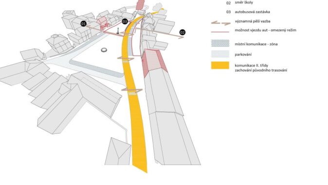 propracovaný, má zdařilé dopravní řešení včetně parkování, vhodná je i osa