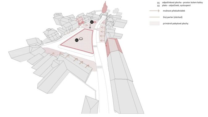 náměstí nabízejí zajímavé pohledy, jsou použity zajímavé povrchy a jedinečný