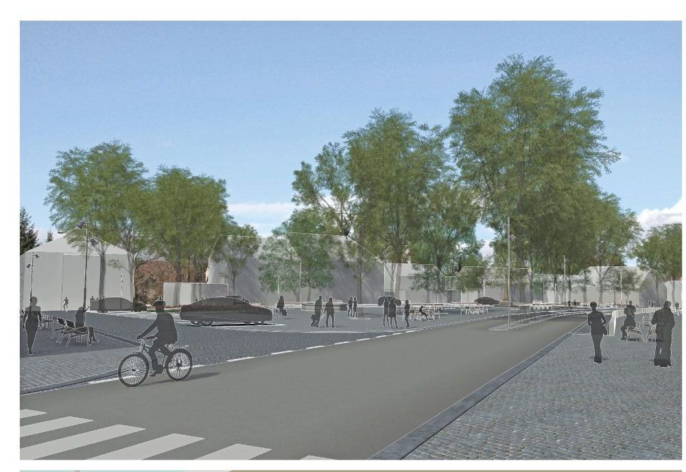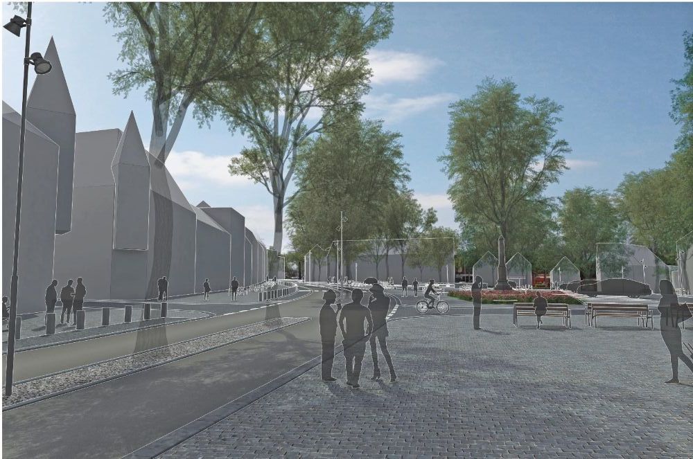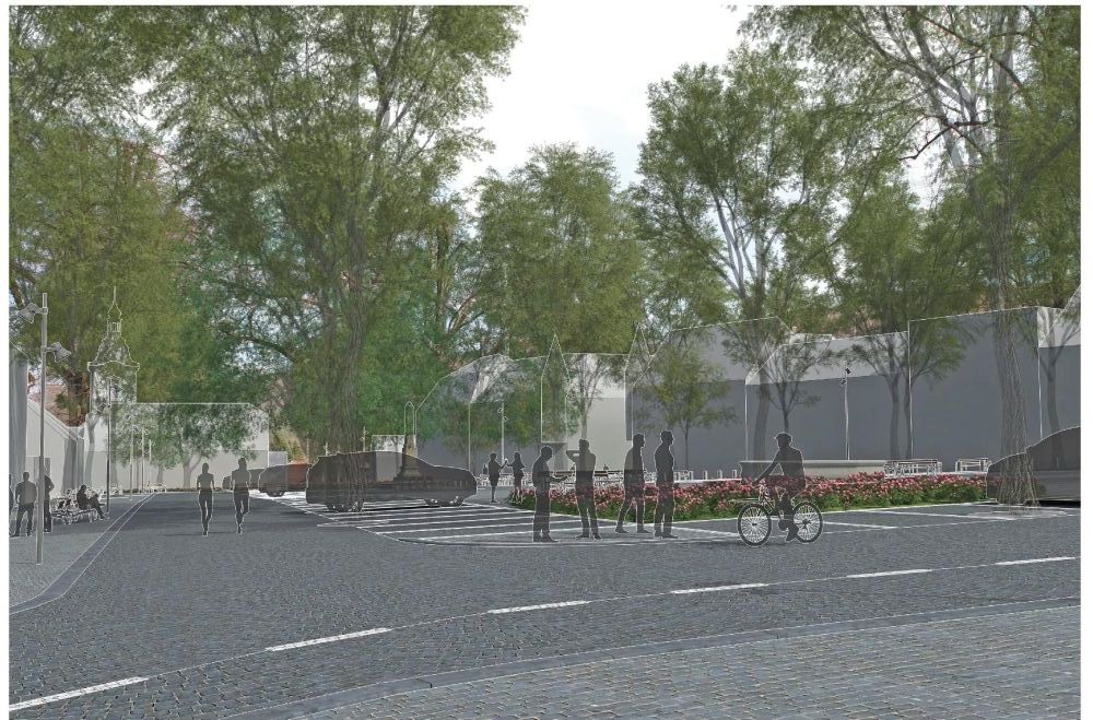 Hodnocení poroty: Porota ocenila vytvoření náměstí jako multifunkčního prostoru v jedné výškové úrovni, dalším pozitivem je ponechání původní zeleně doplněné o barevné trvalkové plochy. Dopravní řešení je kvalitní s výhradou umístění vzrostlé zeleně do pásu mezi komunikačními pruhy.