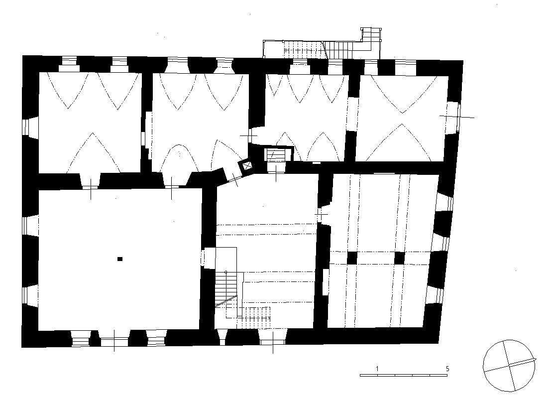 stropní konstrukce nad prvním patrem, poškozené byly dřevěné stropy v