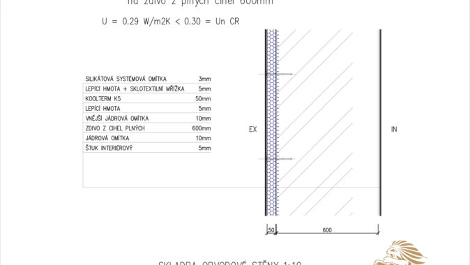 Pro bezchybnou aplikaci systému ETICS byla soudržná část původní jádrové omítky zachována a zbylé nevyhovující části byly provedeny nově. Dodavatelem systémových materiálů ETICS byla společnost Weber. Materiály byly zcela v souladu s požadavky projektu a památkové péče včetně speciální minerální škrábané omítky, co nejvíce připomínající vzhled a strukturu omítky původní.