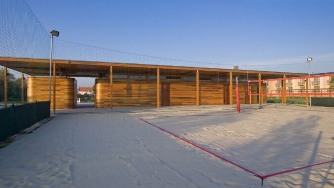 areálu. Jde o zázemí zdejšího sportoviště, tedy tří beachvolejbalových hřišť a