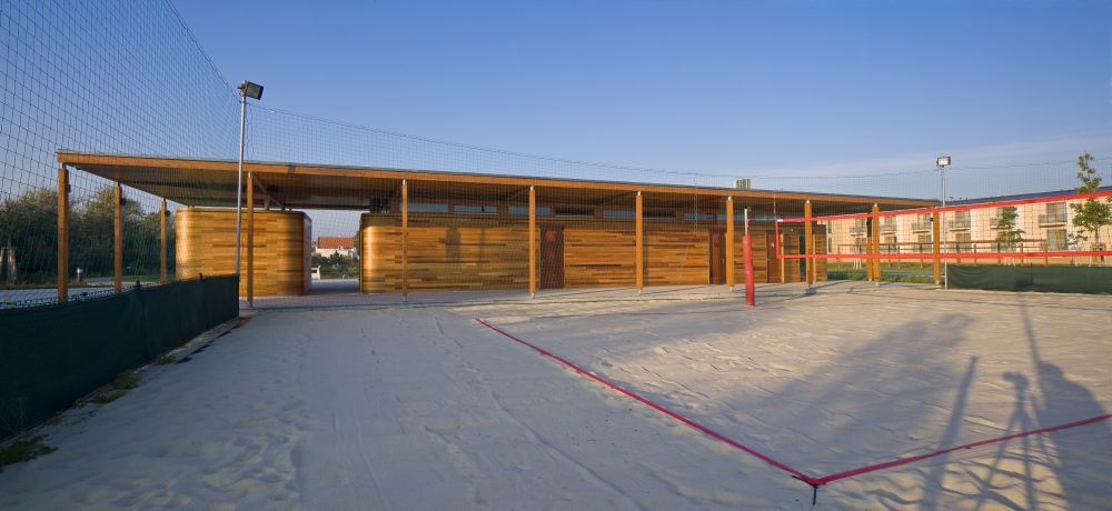 areálu. Jde o zázemí zdejšího sportoviště, tedy tří beachvolejbalových hřišť a