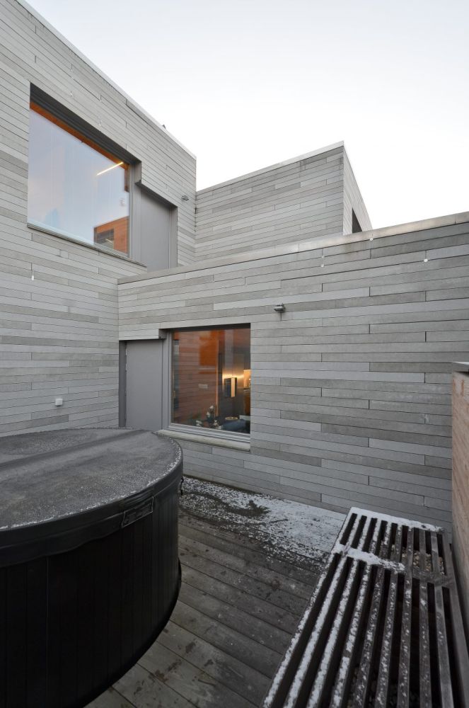 Výsledkem zadání je rozšíření rodinného domu do zahrady v severní části. Přístavba je sestavena z krabiček tvarovaných podle účelu místnosti a poskládaných s ohledem ke stávající zeleni zahrady a na pohledové odstupy a zastínění sousedních pozemků.