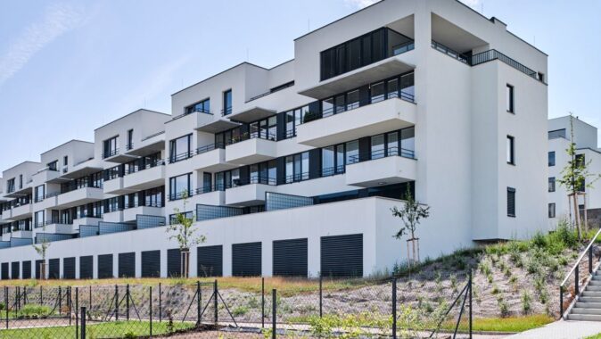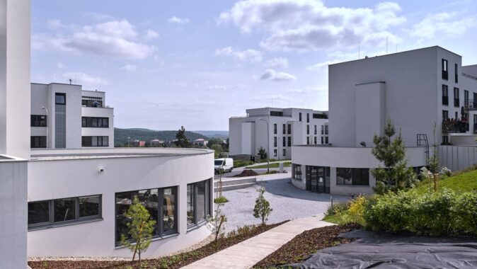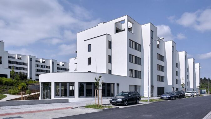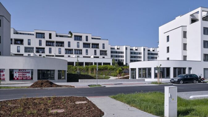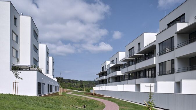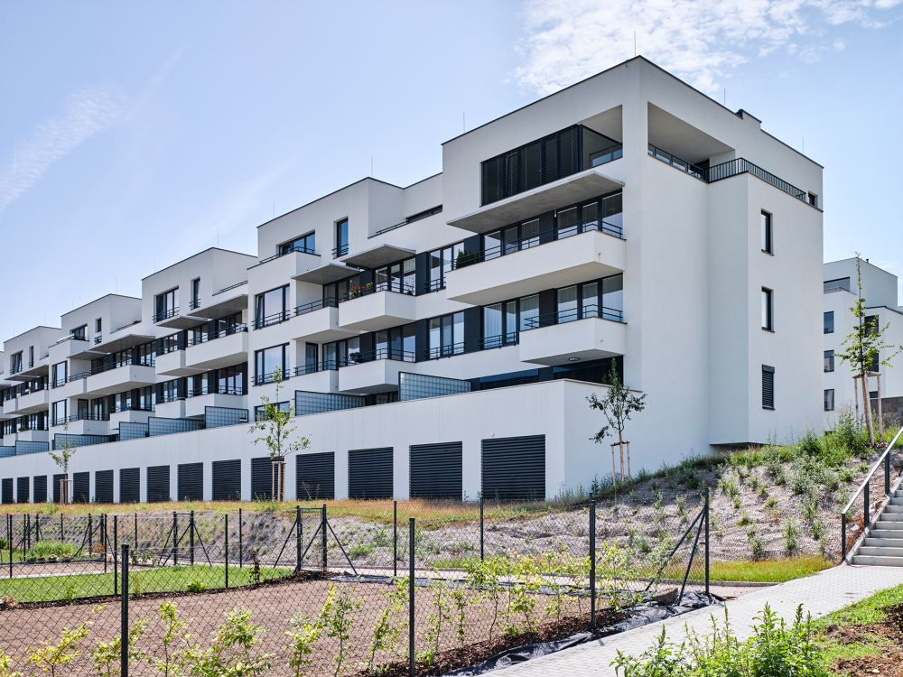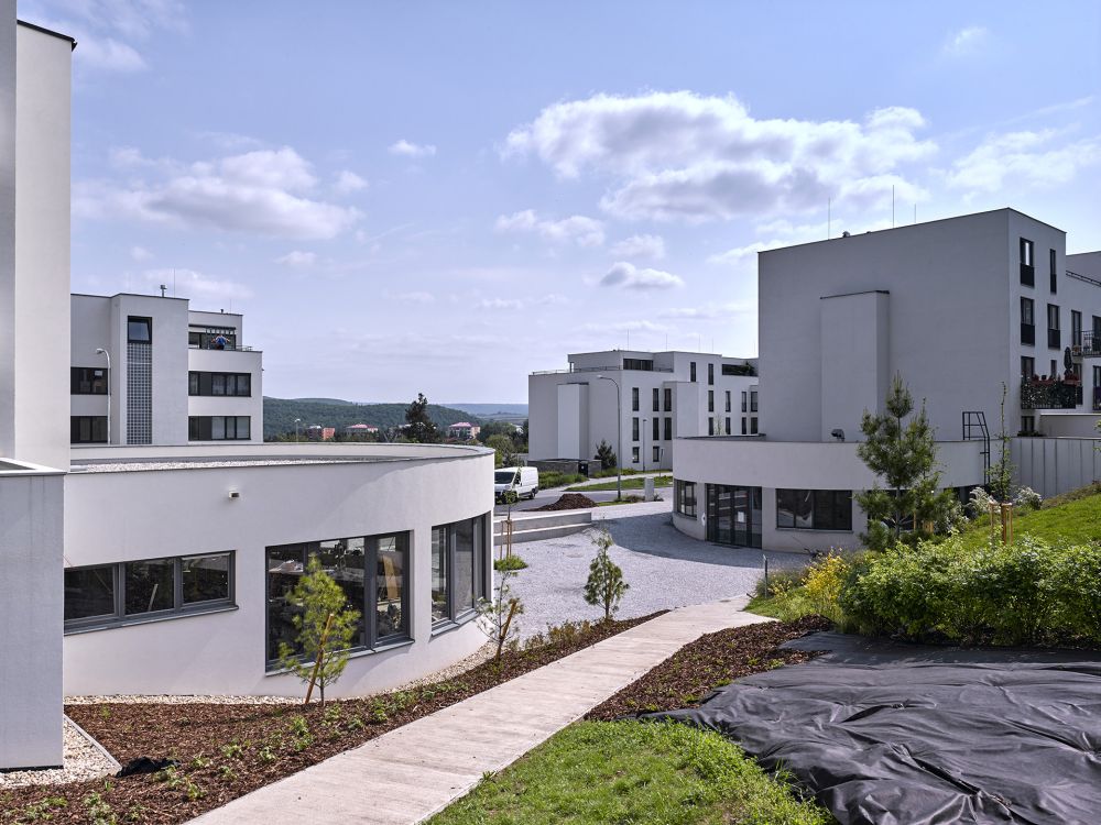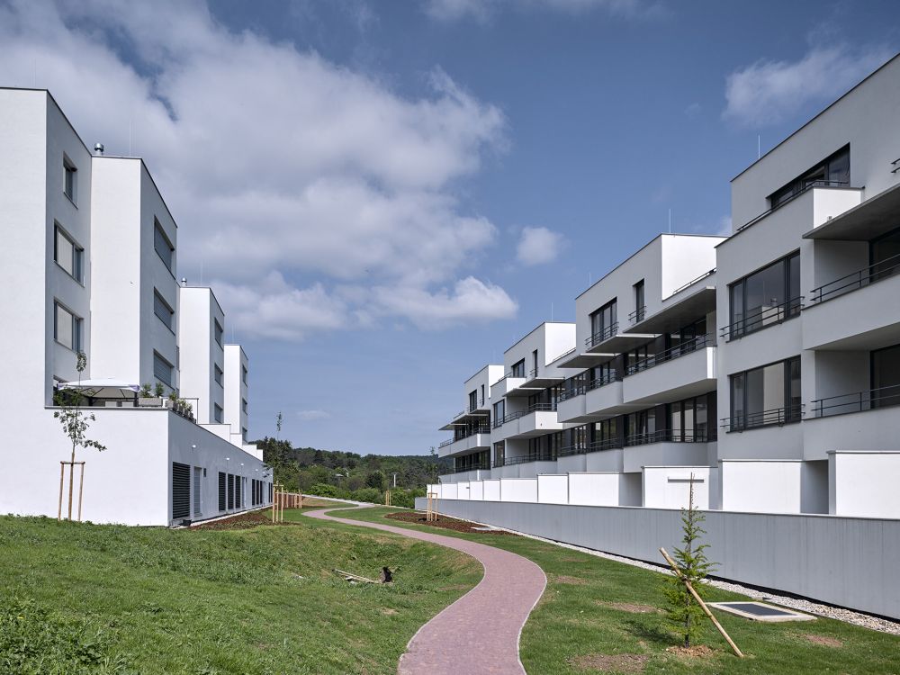 Obytný soubor leží na rozhraní města a příměstské krajiny, svažuje