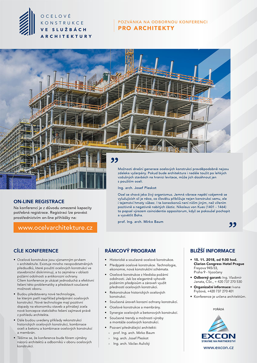 Těšíme se, že konference bude fórem výměny názorů architektů a odborníků v oboru ocelových konstrukcí.