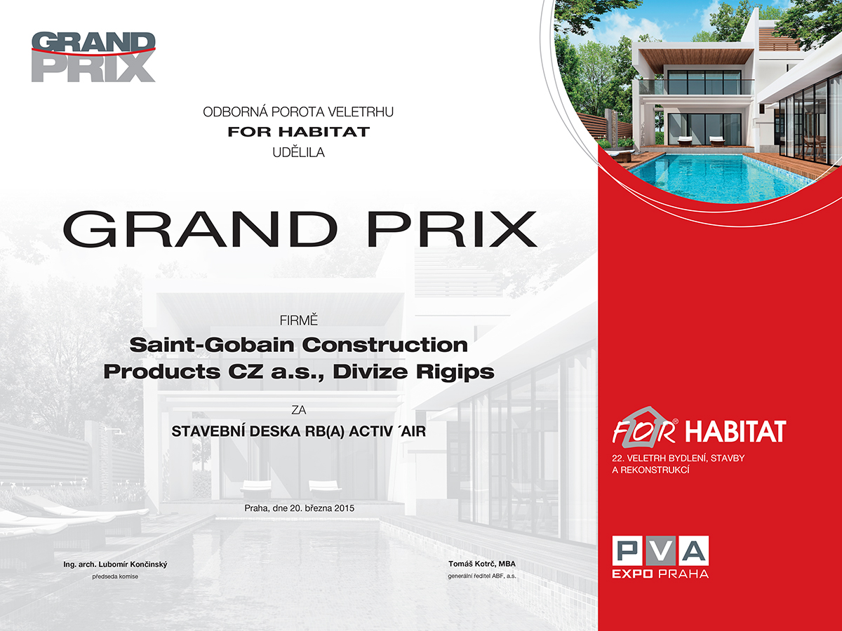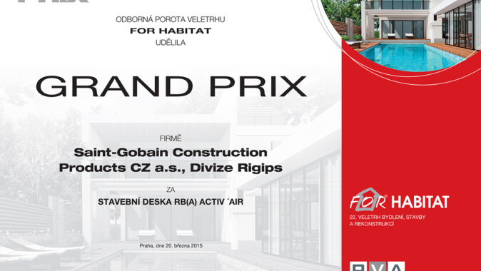 Společnost Saint-Gobain Construction Products CZ a. s., Divize Rigips byla oceněna na veletrhu FOR HABITAT 2015.
