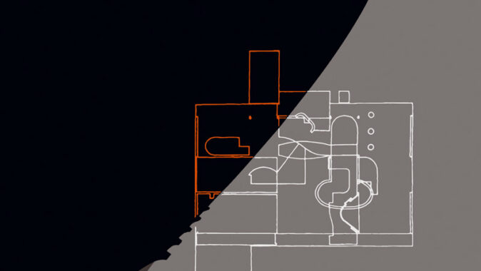 Profil dórské hlavice z Parthénonu (A. P.) a superpozice půdorysů čtyř podlaží vily Stein od Le Corbusiera v Garches (katedra B. Hoesli)