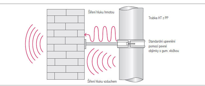 Nejčastějším místem vzniku hluku v rámci vnitřní kanalizace jsou hlavní stoupací potrubí, která ruší více uživatelů bytových domů zároveň. Mnozí z nás tuto situaci pociťují denně na vlastní kůži. Navíc staré potrubí z azbestocementu, vzhledem ke své vysoké hmotnosti, nevykazuje až tak špatné akustické vlastnosti. Běžné potrubí z plastu (polypropylen nebo PVC) je na tom výrazně hůře. Bylo by proto hříchem při rekonstrukci nahradit staré potrubí novým s ještě horšími vlastnostmi.