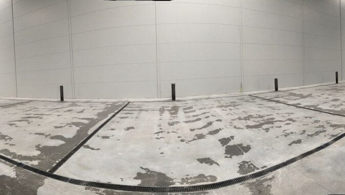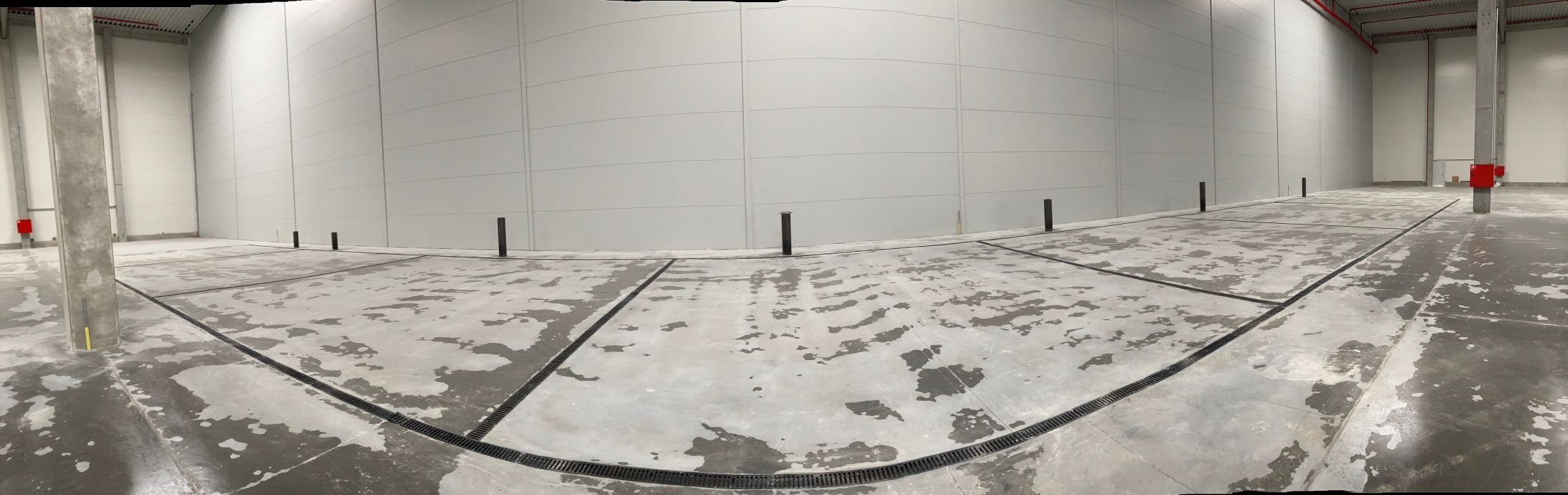 Projekční tým MEA sestavil návrh spádovaného odvodnění s polymerbetonovými žlaby SV 1000 s litinovým roštem E 600 pro zvládnutí velmi vysoké zátěže. Mimořádně robustní a prakticky neopotřebitelná konstrukce těles žlabů zajišťuje maximální míru spolehlivosti. Těsnící spojovací drážka umožní hladké připojení k podlaze. Pokládka žlabů probíhala počátkem roku 2023.