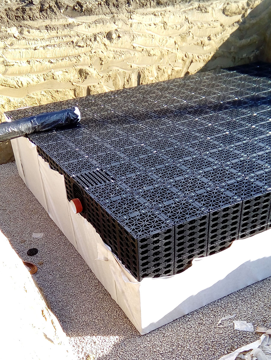 v místě dopadu a její vsáknutí do půdy. Tuto cestu zvolili i stavitelé