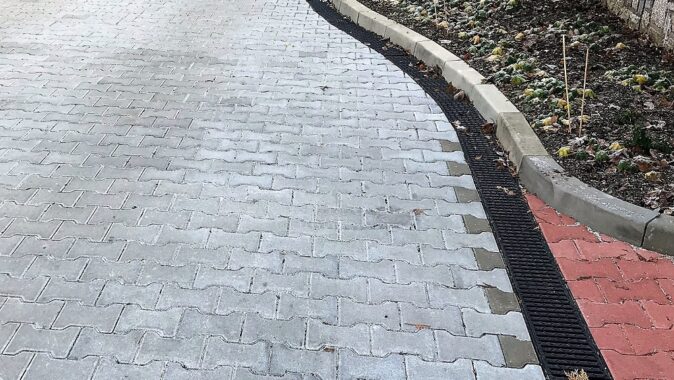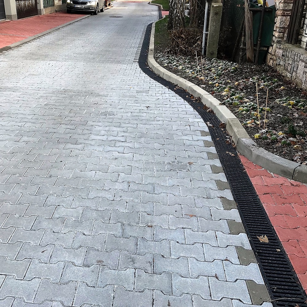 obrubníky MEA KERB, které odvádí dešťovou vodu z nedostatečně spádované