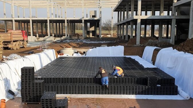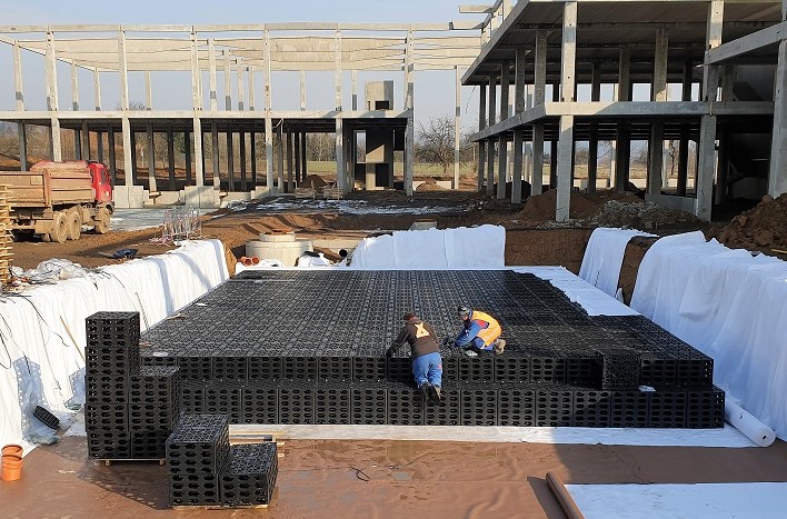 objektu je instalace retenční galerie MEA o objemu 215 m3. Galerie je sestavena