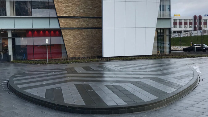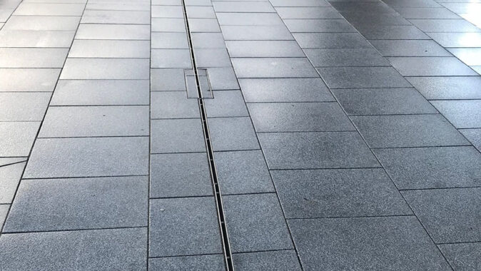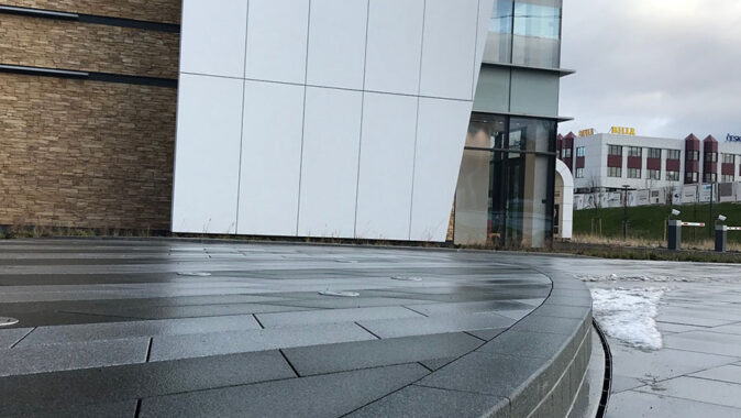 Bezpečný pohyb lidí byl také jeden z klíčových zadání pro projektanty. Generální dodavatel stavby, společnost STRABAG a.s., společně s investorem udělali výběrové řízení na návrh a řešení, ve kterém nejlépe obstál projekční tým MEA. Specialisté navrhli odvodnění parteru a zpevněných ploch před vstupy do objektu, kolem schodišť, okrajích chodníků, pásů zeleně a elipsovité fontány celonerezovým žlabem, systémem štěrbinových žlabů, nerezových obrubníků a také využili zadlažďovací poklopy.