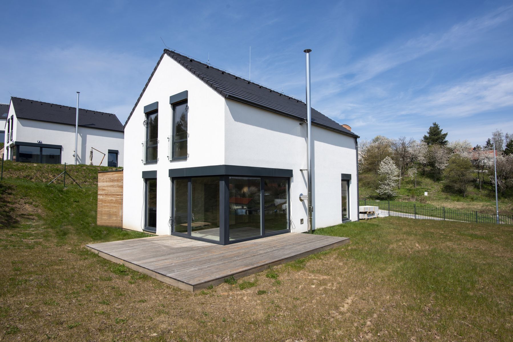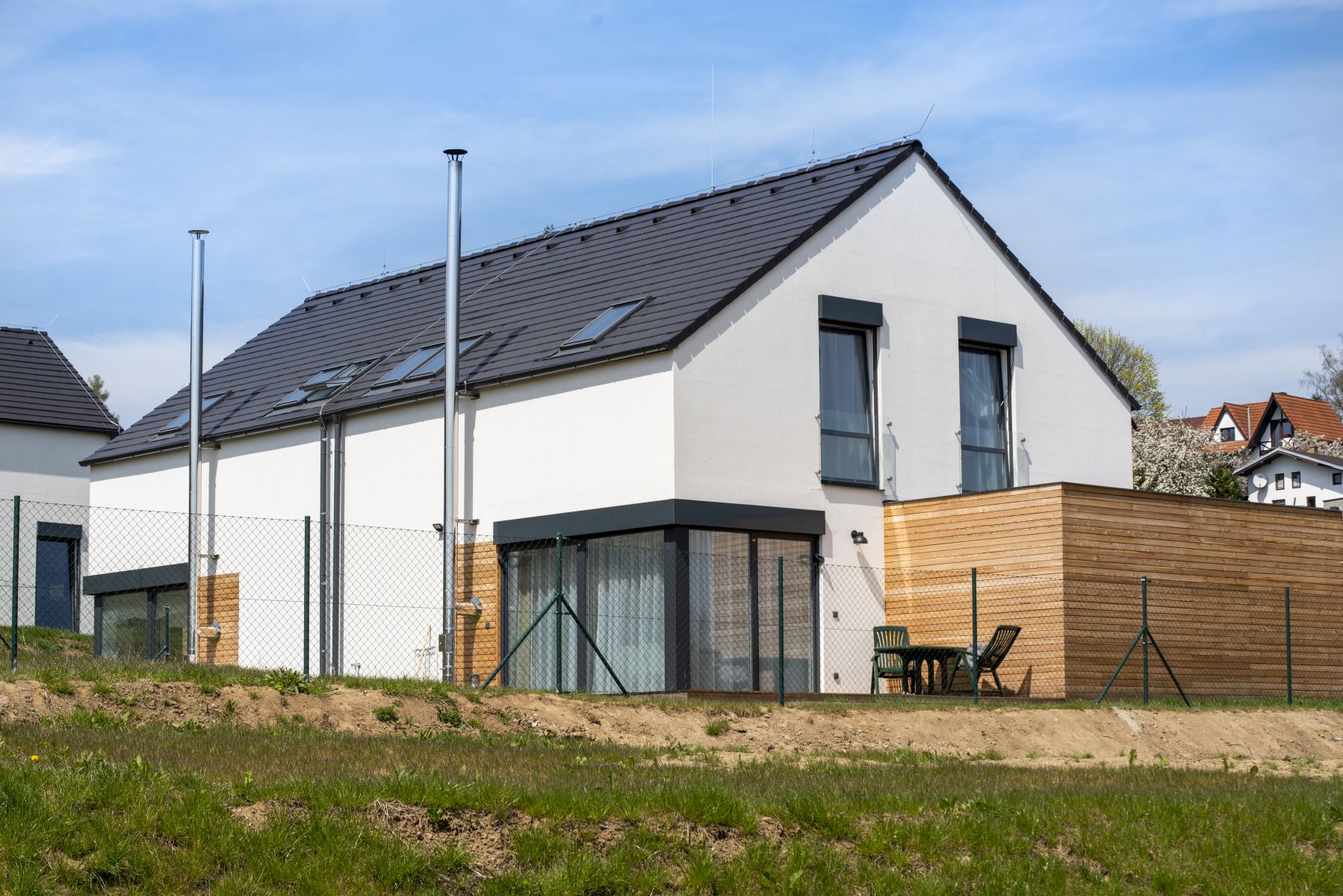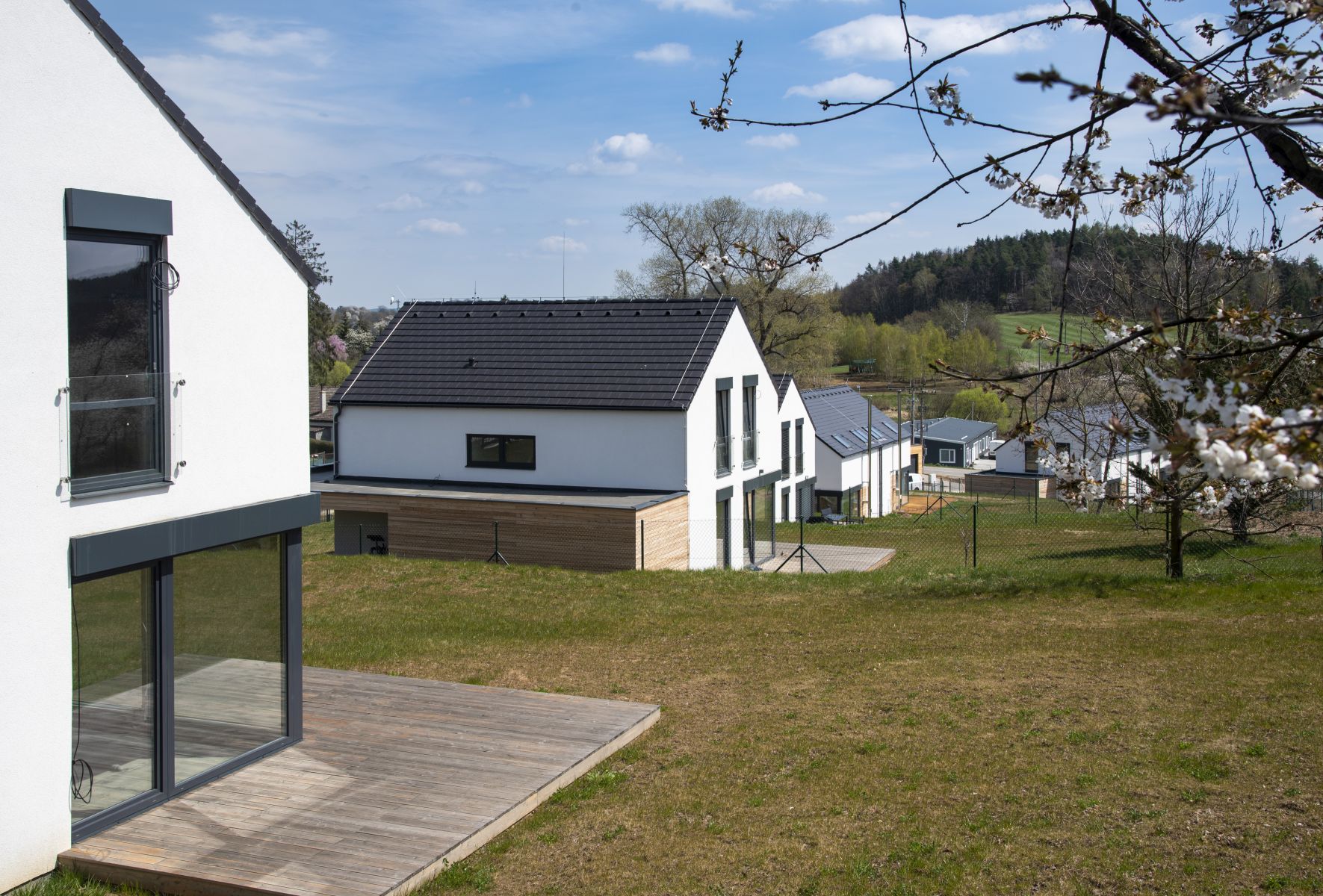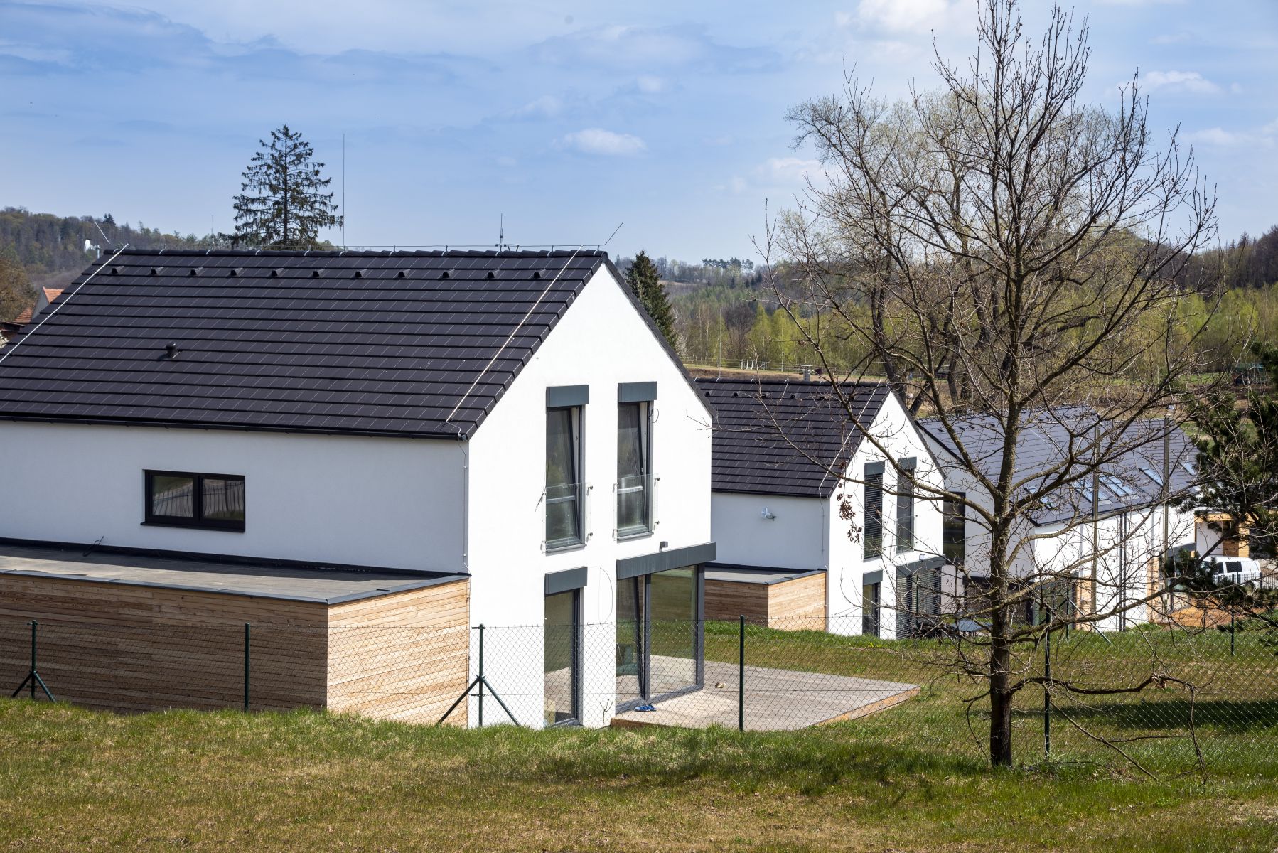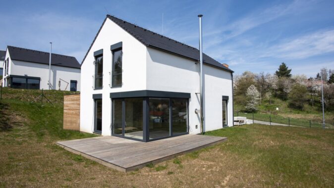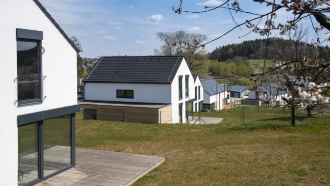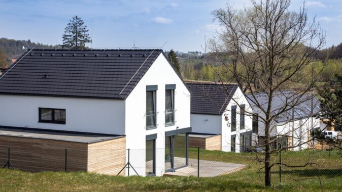Mnoho lidí utíká z města ven, neboť touží po klidném bydlení vesnického typu v kontaktu s přírodou. Není proto divu, že developerských projektů v okolí větších měst přibývá tempem, za které by se nestyděl žádný trochu slušný sporťák. Bydlení U zámecké obory, jež nemá daleko k historickým odkazům významného českého průmyslníka Františka Ringhoffera, vyrostlo na svažitém pozemku v těsné blízkosti sázavských lesů. Autorem projektu je architekt Jiří Rymeš, který se nechal inspirovat tvaroslovím typické české vesničky a navrhl domy se sedlovými střechami, ale v moderním pojetí. Hlavní pozornost poutají kromě decentní linky minimalistického pera také antracitová okna, která úspěšně kontrastují se světlou omítkou a tmavou střechou. Nebyl by to moderní dům, kdyby neměl velkoformátové dveře, jež poskytnou uživatelům bohatě prosvětlený interiér, ale co je ještě důležitější, snadný přístup na vonící barevnou zahradu. Svažitý pozemek s domy s citem poskládanými tak, aby každý měl pokud možno maximum soukromí, umocňují opravdu příjemný dojem z celého projektu.
