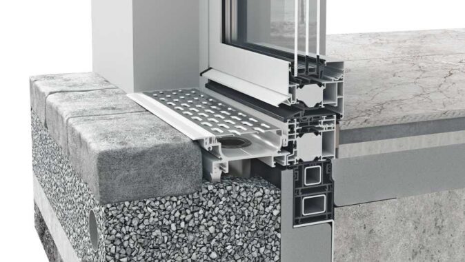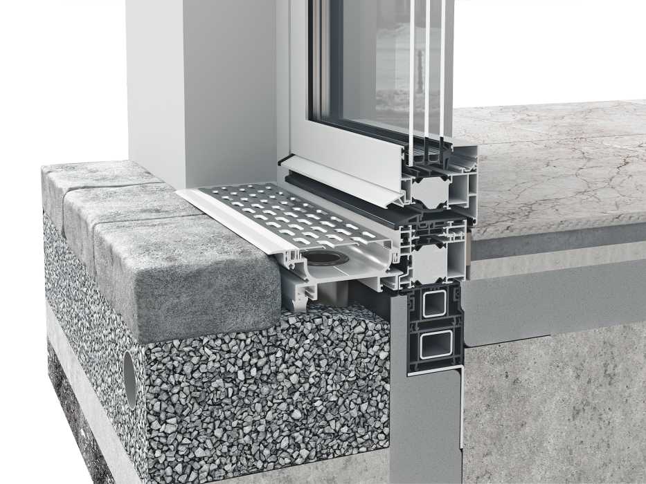 Pro maximální komfort bydlení mohou být okna systému heroal W 77 provedena i jako do země zapuštěné balkonové dveře, které s maximální výškou prahu 20 mm odpovídají požadavkům normy DIN 18040 na bezbariérovou stavbu. V kombinaci s drenážním systémem heroal DS je současně zajištěna nezbytná ochrana proti vlhkosti, neboť spolehlivě odvádí povrchovou vodu s kapacitou okolo 0,8 l/s pod krytem z vysoce kvalitní nerezové oceli.