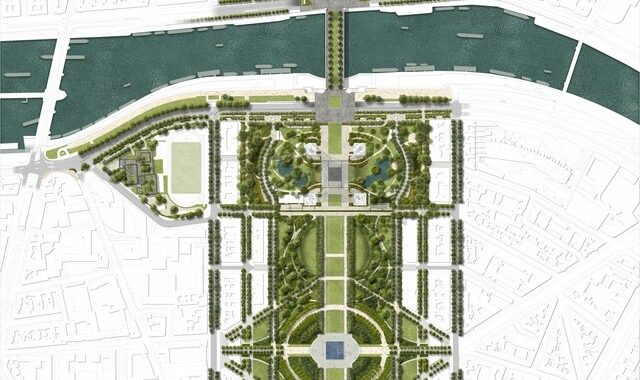 Plán americké architektky Kathryn Gustafsonové, který porazil tři další finálové návrhy, počítá s rozšířením pěších zón a zeleně v okolí slavné pařížské památky. Park se nově potáhne už od náměstí u paláce Trocadéro a na jeho druhém konci bude jako dosud vysoká vojenská škola École militaire na druhém břehu řeky Seiny.
