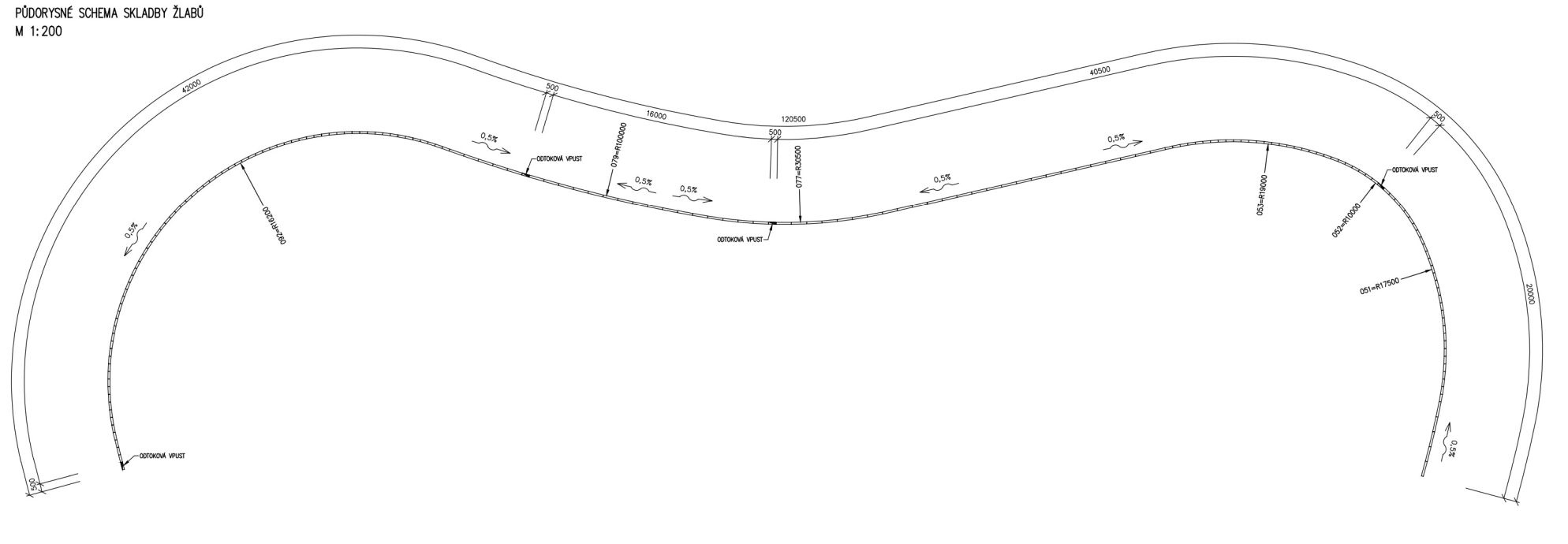 žlabů v obloukových tvarech a s vnitřním spádem.