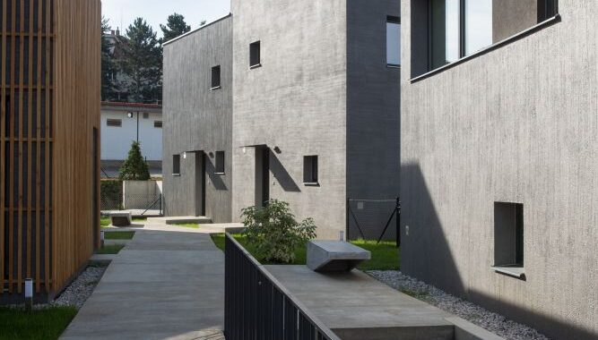koncept má blíže k bydlení v samostatné vile. V každém ze sedmi domů mohou být