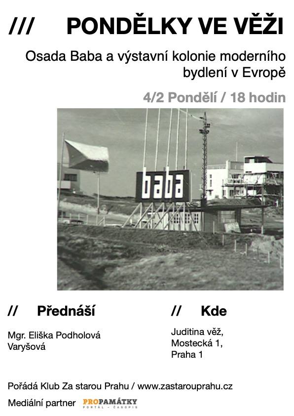 Přednáška se zaměří na historii výstavních sídlišť Werkbundu v Evropě, vzniklých na přelomu 20. a 30. let 20. století, z nichž je u nás nejznámější pražská Baba. Výstava Osada Baba Svazu čs. díla v roce 1932 byla inspirována řadou výstav moderního bydlení pořádaných obdobnými organizacemi (Werkbund) v okolních státech – stuttgartskou kolonií Weissenhof, brněnským Novým domem, wroclawskou WUWA či výstavou v Zürichu a Vídni. Vznikl tak fenomén živoucích výstavních exponátů, domů, které představovaly soudobou ideu o bydlení a životě moderního člověka a zároveň měly po skončení výstavy tomuto účelu i sloužit. Přednáška se bude věnovat historii a specifikům jednotlivých kolonií a na závěr se dotkne i jejich dalších osudů a současné památkové ochrany.