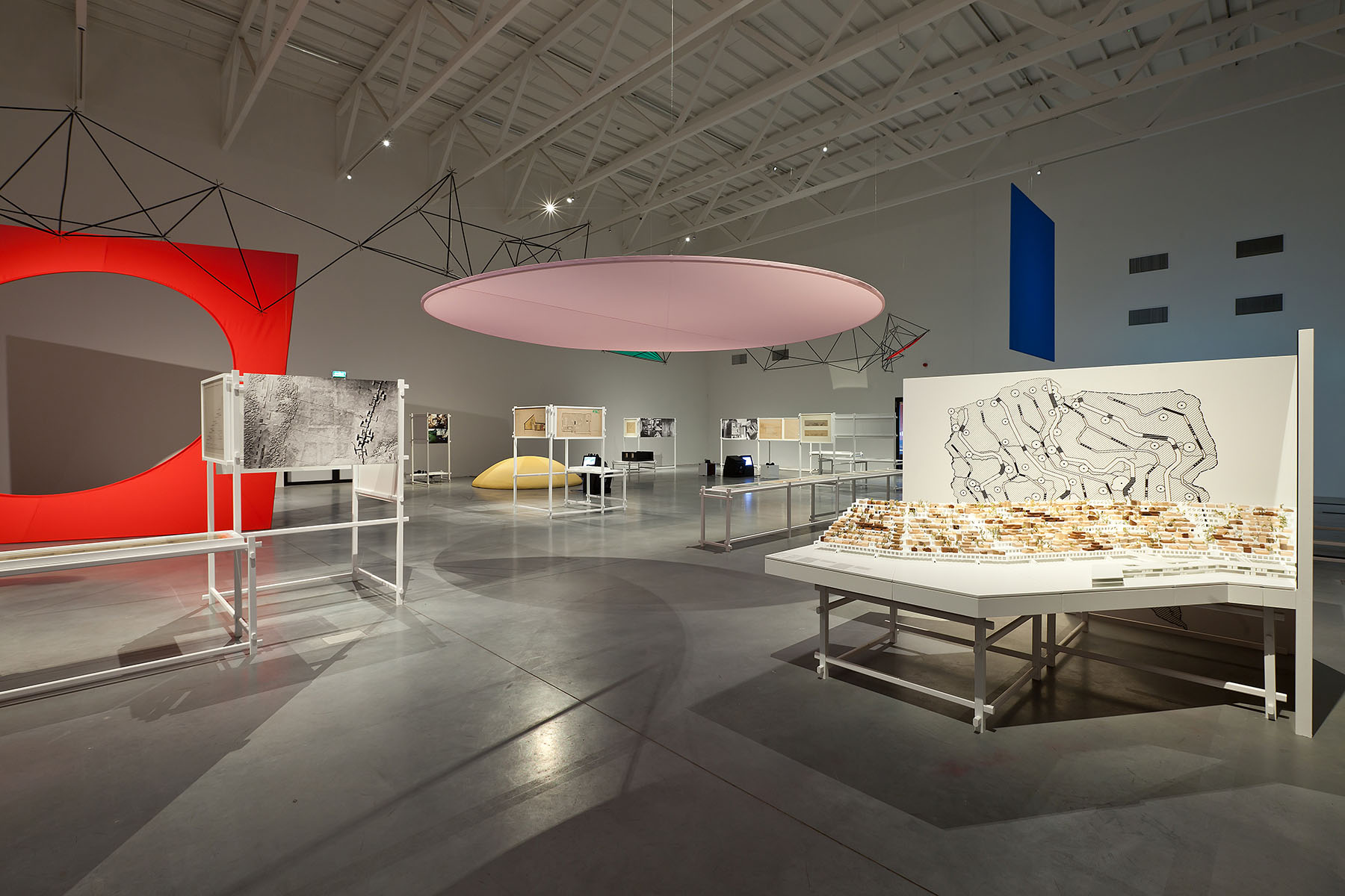 významné stavby a projekty doplněné sochami, obrazy a didaktickými pomůcky. Vystavené