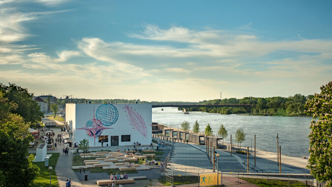 nábřeží Visly, který byl do Varšavy přenesen z Berlína. Pavilon byl v letech