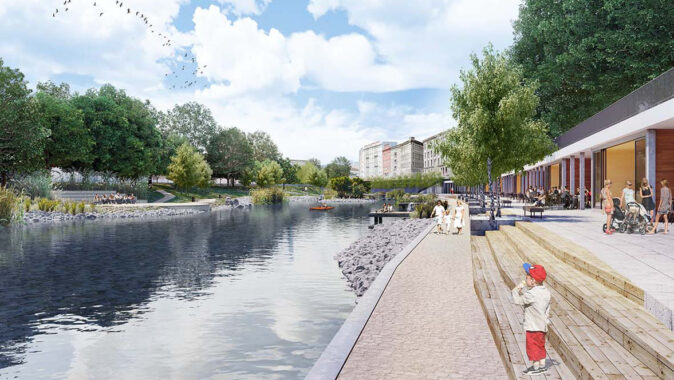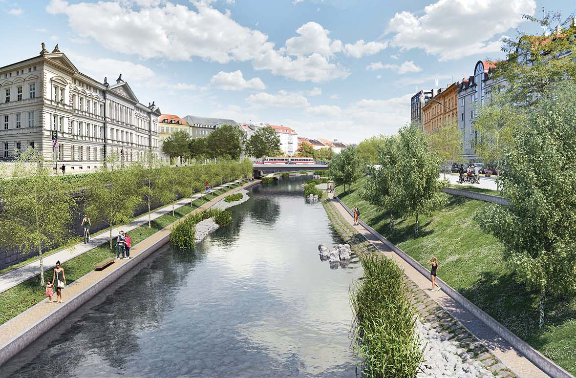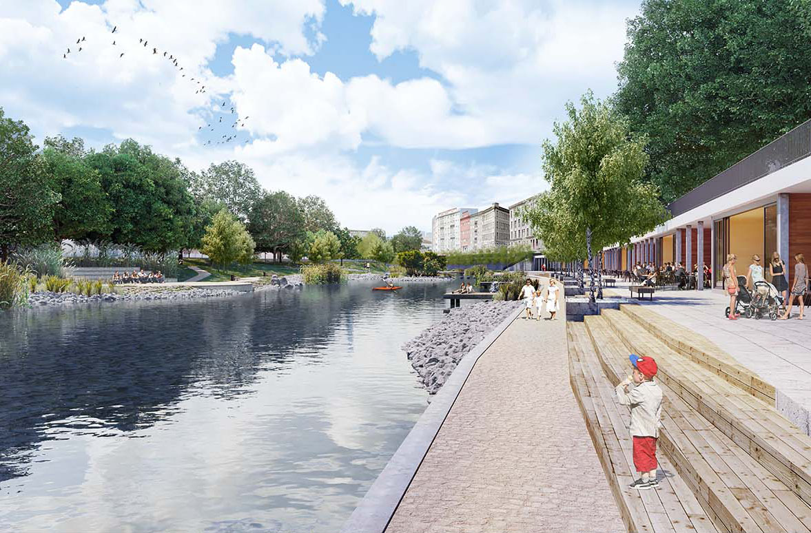 vytvořit živou zónu v okolí řek, kde se budou potkávat lidé. Po obou